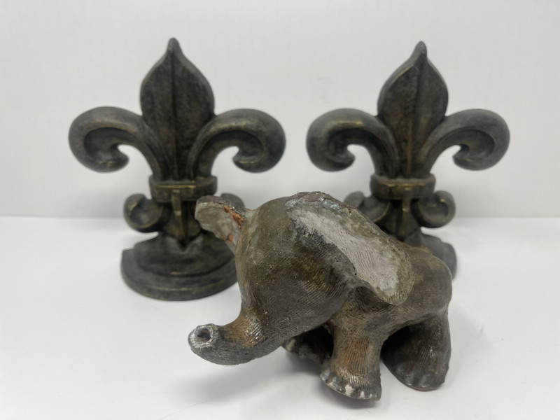 Lot # 167 - Fleur De Les Bookends & Elephant Bookend Starting Bid: $ 5.00 Bids: This sale will end in: |