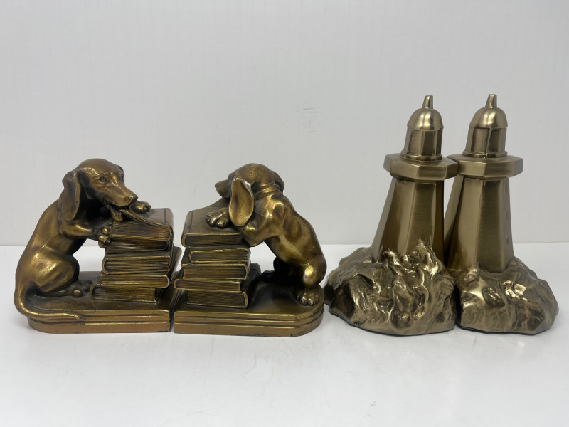 Lot # 169 - Brass Dog & Lighthouse Bookends Starting Bid: $ 5.00 Bids: This sale will end in: |