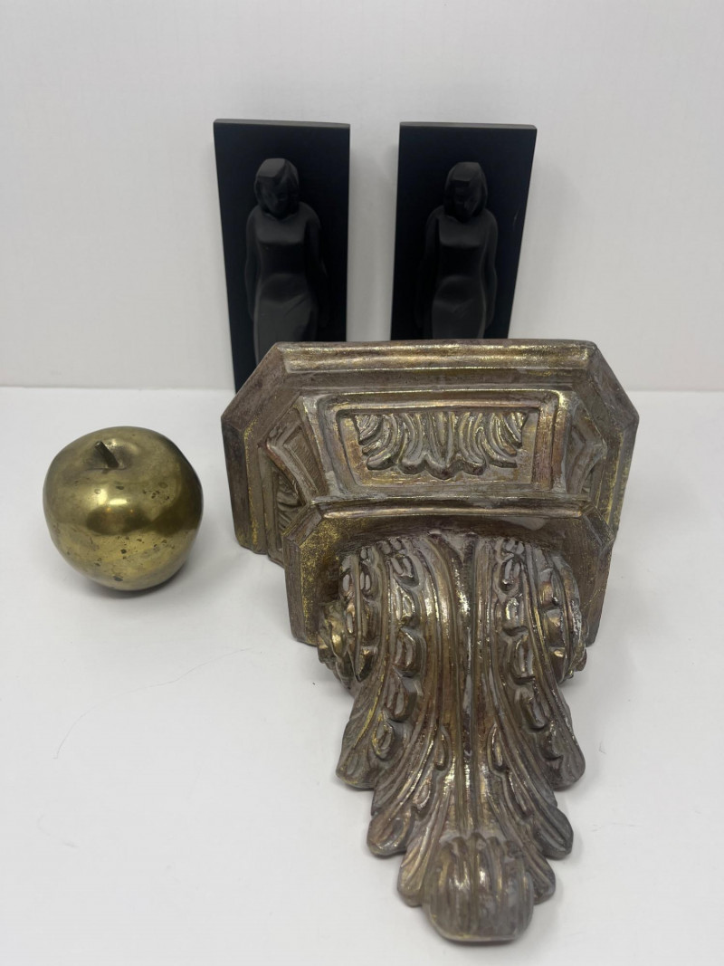 Lot # 170 - Leaning Woman Bookends, Decorative Wall Bracket, Brass Apple Starting Bid: $ 5.00 Bids: This sale will end in: |