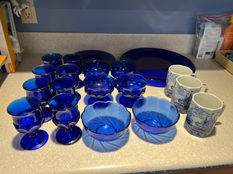 Lot # 210 - Cobalt Blue Glassware/Plates Starting Bid: $ 5.00 Bids: This sale will end in: |