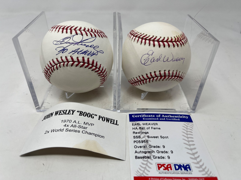 Lot # 71 - Earl Weaver & Boog Powell Autographed Baseballs Starting Bid: $ 10.00 Bids: This sale will end in: |