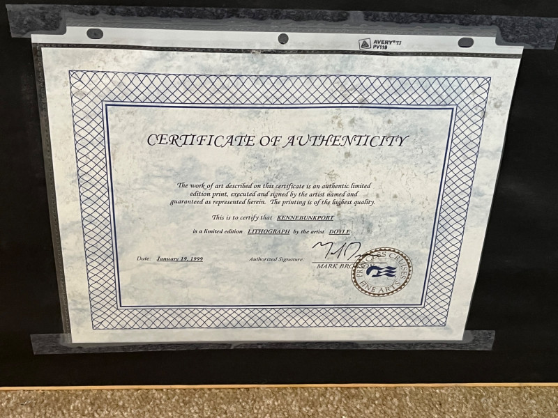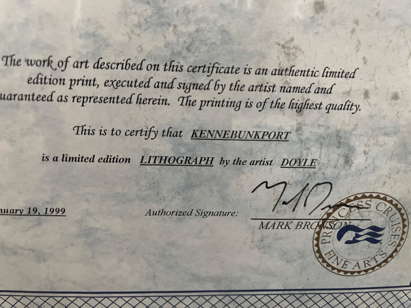 Rare “Kennebunkport” Lithograph Limited Edition (Twig) by Richard Doyle Serial #'d 460/495 Titled, Numbered, & Signed In Pencil About The Artist Richard Doyle: Richard James Doyle, often known as "The Twig Painter," was a prominent American artist, particularly in Western Massachusetts, who was recognized for his unique twig painting technique. This technique, developed in the backwoods of Mississippi, was simple, versatile, and allowed him to capture fine details. Doyle's work, characterized by American Realism, gained national attention, and he was even featured on programs like The Today Show. Tragically, his career was cut short by diabetes, leaving him legally blind, but he continued to create, later writing his autobiography Frame Size: 33 x 40 **Item Is Eligible For Shipping**