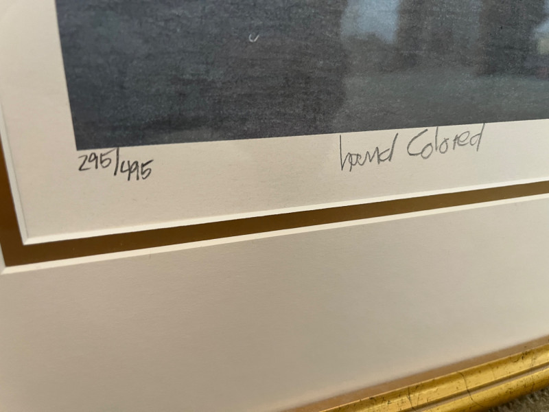“Lobster Village” Lithograph LE by Richard Doyle Serial #'d Hand Colored Titled, Numbered, & Signed In Pencil About The Artist Richard Doyle: Richard James Doyle, often known as "The Twig Painter," was a prominent American artist, particularly in Western Massachusetts, who was recognized for his unique twig painting technique. This technique, developed in the backwoods of Mississippi, was simple, versatile, and allowed him to capture fine details. Doyle's work, characterized by American Realism, gained national attention, and he was even featured on programs like The Today Show. Tragically, his career was cut short by diabetes, leaving him legally blind, but he continued to create, later writing his autobiography Frame Size: 33 x 40 **Item Is Eligible For Shipping**