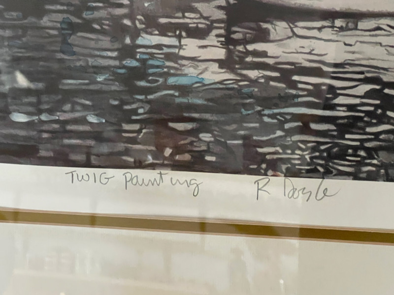 Rare “Ketchikan” Limited Edition Lithograph by Richard Doyle 74/495 Hand Colored Twig Painting Titled, Numbered, & Signed In Pencil About The Artist: Richard James Doyle, often known as "The Twig Painter," was a prominent American artist, particularly in Western Massachusetts, who was recognized for his unique twig painting technique. This technique, developed in the backwoods of Mississippi, was simple, versatile, and allowed him to capture fine details. Doyle's work, characterized by American Realism, gained national attention, and he was even featured on programs like The Today Show. Tragically, his career was cut short by diabetes, leaving him legally blind, but he continued to create, later writing his autobiography Frame Size 41x32.5” **Item Is Eligible For Shipping**