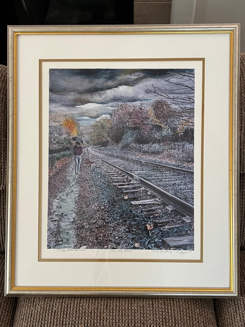 "The Way Home" Limited Edition Lithograph By Richard Doyle 583/860 Hand Watercolored Twig Painting Titled, Numbered, & Signed In Pencil Frame dimensions 27 x 32” About The Artist: Richard James Doyle, often known as "The Twig Painter," was a prominent American artist, particularly in Western Massachusetts, who was recognized for his unique twig painting technique. This technique, developed in the backwoods of Mississippi, was simple, versatile, and allowed him to capture fine details. Doyle's work, characterized by American Realism, gained national attention, and he was even featured on programs like The Today Show. Tragically, his career was cut short by diabetes, leaving him legally blind, but he continued to create, later writing his autobiography **Item Is Eligible For Shipping**