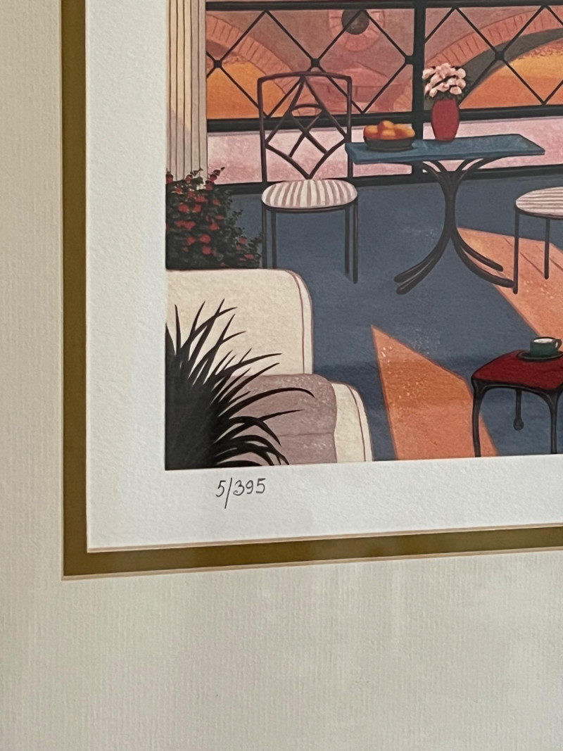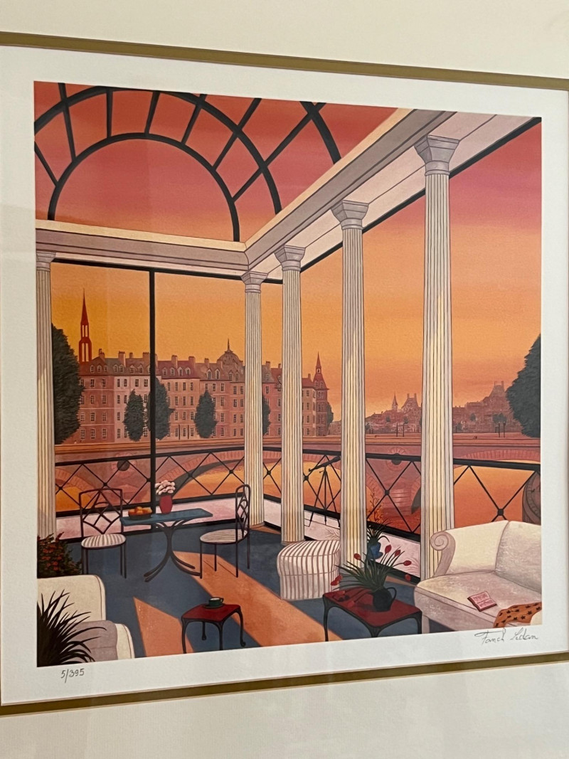 "Paris Penthouse" Limited Edition Serigraph by Ledan Fanch 5/395 Signed and Numbered Frame dimensions 25x25" About the Artist: Fanch Ledan draws on the rhythms and elements from our contemporary visual environment to forge a distinctly original, late twentieth-century vision. His vivid images are totally contemporary with classical nuances and the brightly streamlined look of modern media.