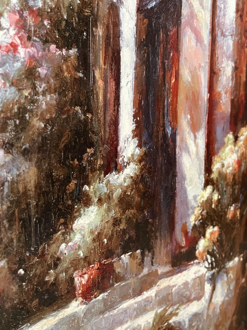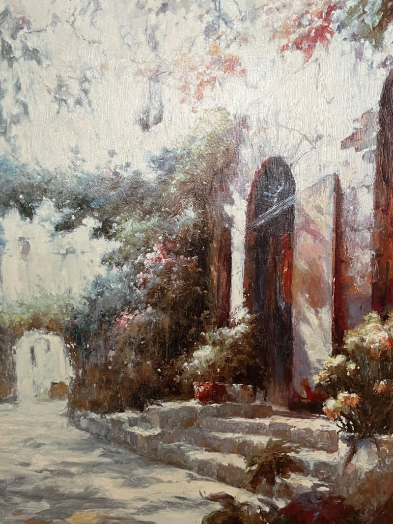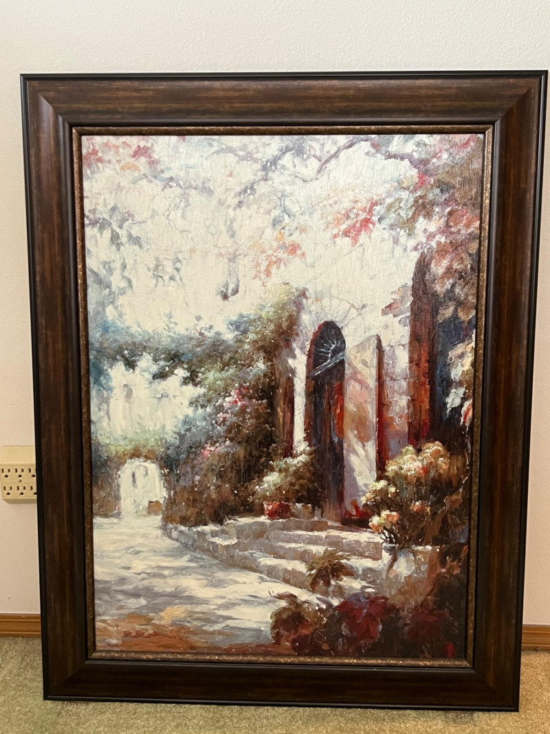 Framed canvas giclee of a beautiful arched entryway and lush surrounding. Frame dimensions 35.5 x 46“ **Shipping Available**