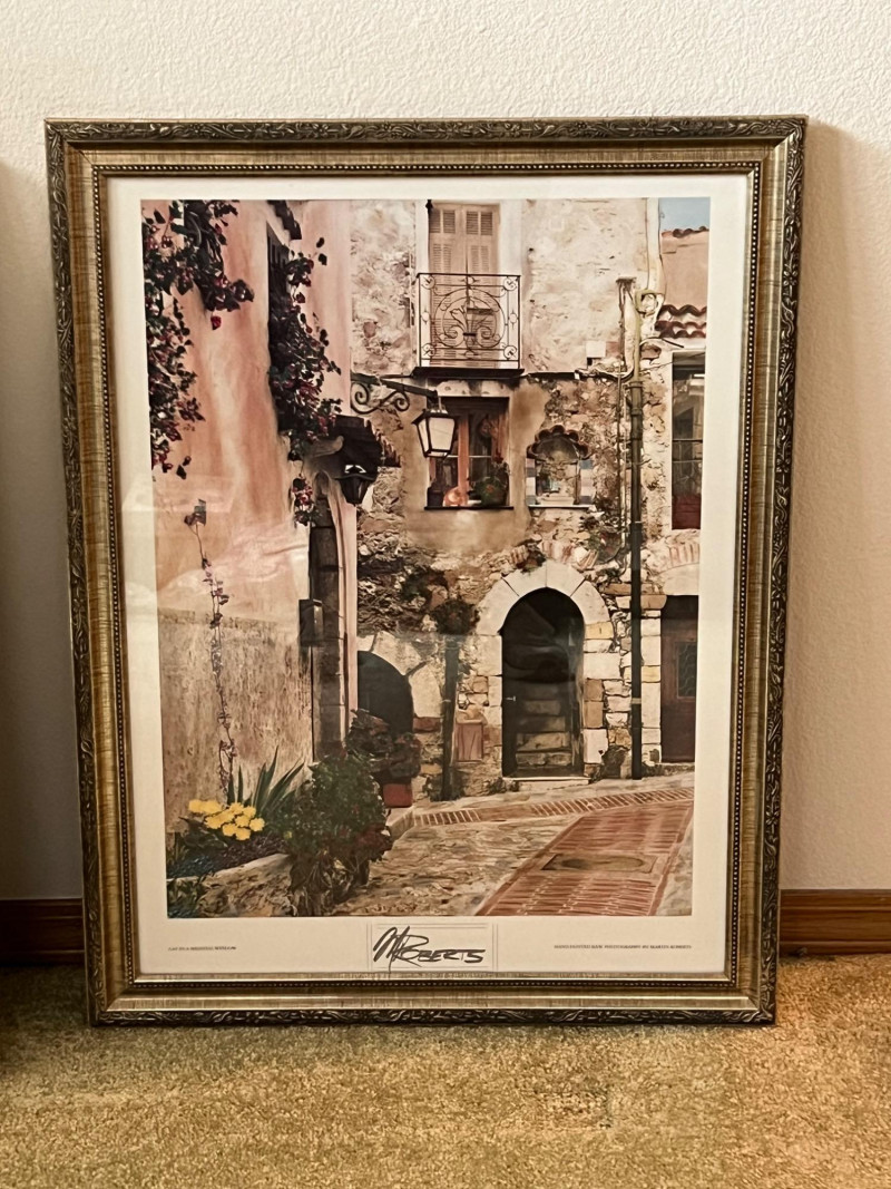 "Cat In Medieval Window" by Martin Roberts Hand painted B&W Photography Print Frame dimensions 20.5 x 26.5” About the Artist: The artist Martin Roberts is a photographer and a painter who has combined the two techniques to produce some of the most beautiful and uniquely sought after art. Shooting film and while developing his original black and white photographs in his darkroom, he then moves the black and white to his easel and pallet, hand-painting oils, acrylics, and water colors to the photographs. A Martin Roberts piece of art brings an uplifting atmosphere to any room. **Shipping Available**