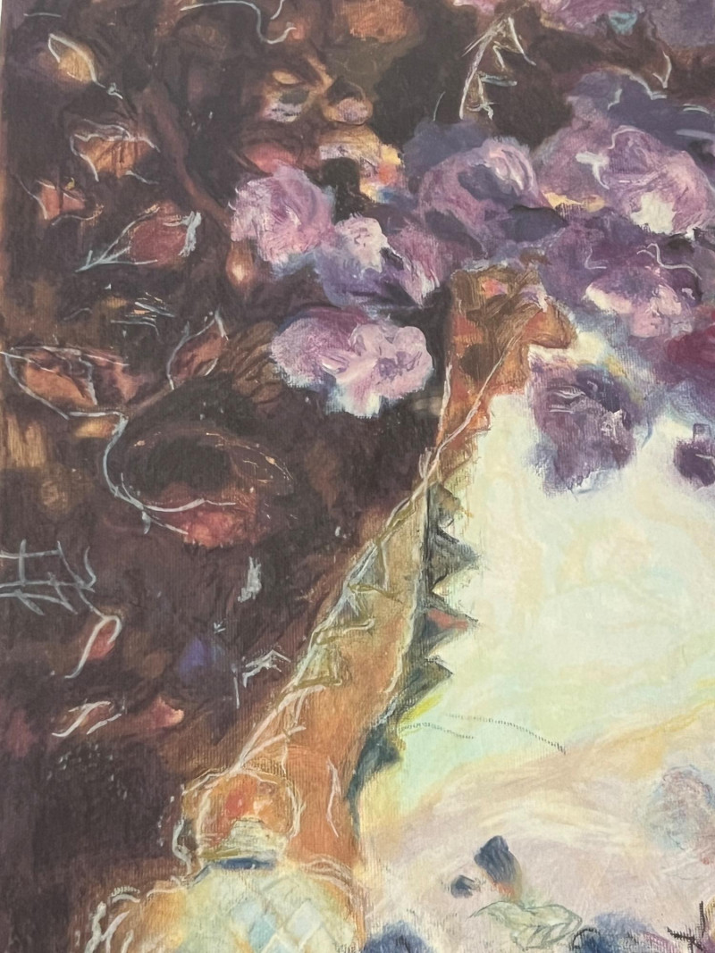 “Study in purple” a Limited Edition Serigraph by Andrew Francis 440/650 Signed and numbered in pencil Frame Dimensions 31x 24.5” About the Artist: Andrew Francis is a British artist born in 1957 in Gloucestershire, now residing in Ceredigion, West Wales. After formal art training, he began his career as a graphic designer, working in various roles including publications manager and web designer. In 2009, he transitioned to full-time painting, focusing primarily on landscapes that capture the essence of Wales and the West Country. Utilizing diverse media such as acrylics, oils, collage, and found materials, Francis explores the balance between representational and emotional depictions of landscapes. His work has been exhibited throughout America and Europe, and he is represented internationally by White Court Art. **Shipping Available**
