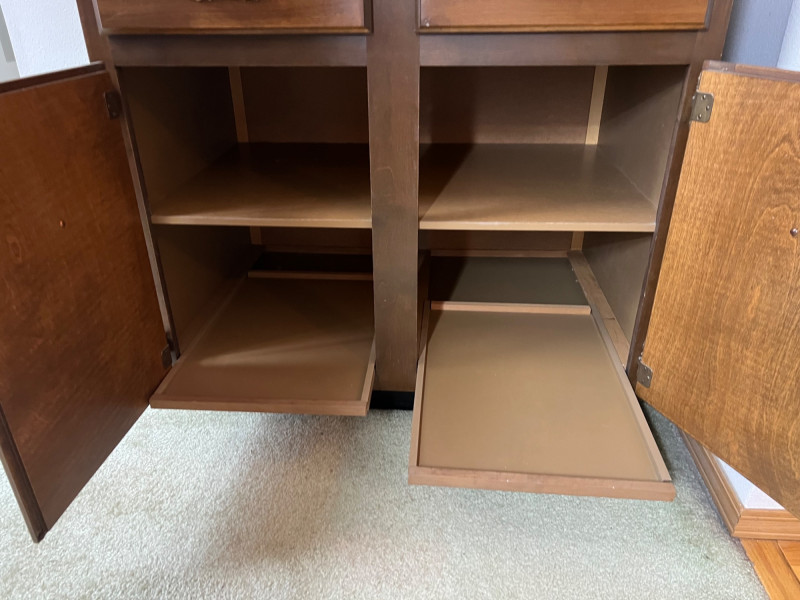 81” tall 24.75” deep 37” wide extremely well made and maintained bottom shelves pull out for easy access to items