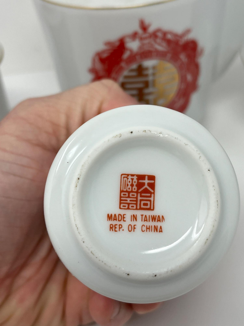 Vintage Tatung Tea Set (Taiwan) Matching Pitcher w/ 6 Cups & Lids Made In Taiwan No Chips/Cracks