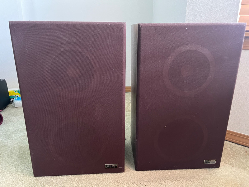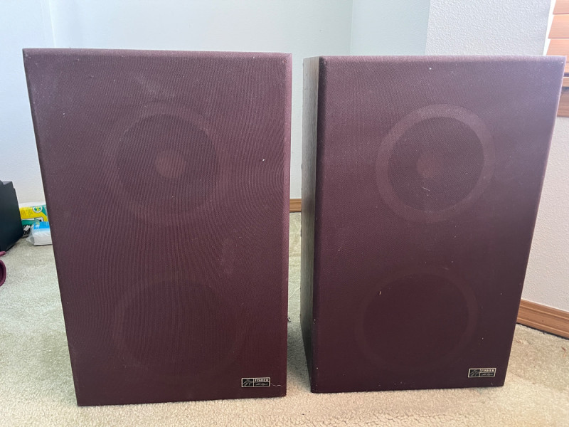 Vintage Fisher Floor Speakers (2) 22 Watt Speakers Circa 1980s No Tears In Speaker Grill Cloth Untested 22” Tall