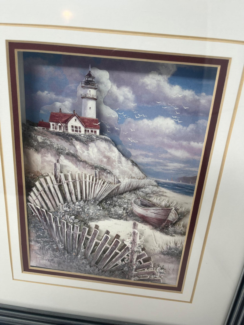 3D Lighthouse Pair Framed Set (Decoupage Art) Dimensions: 12 x 15" Ea