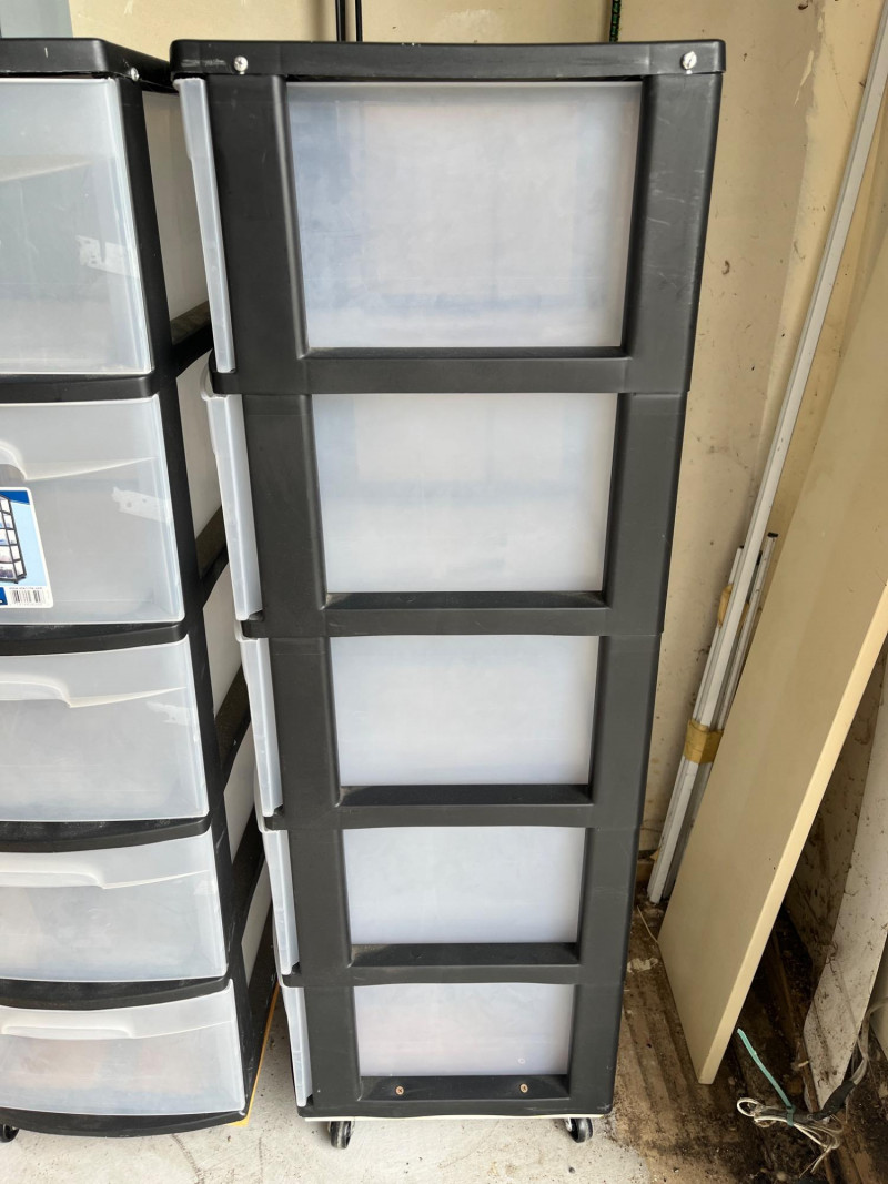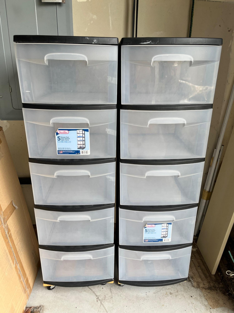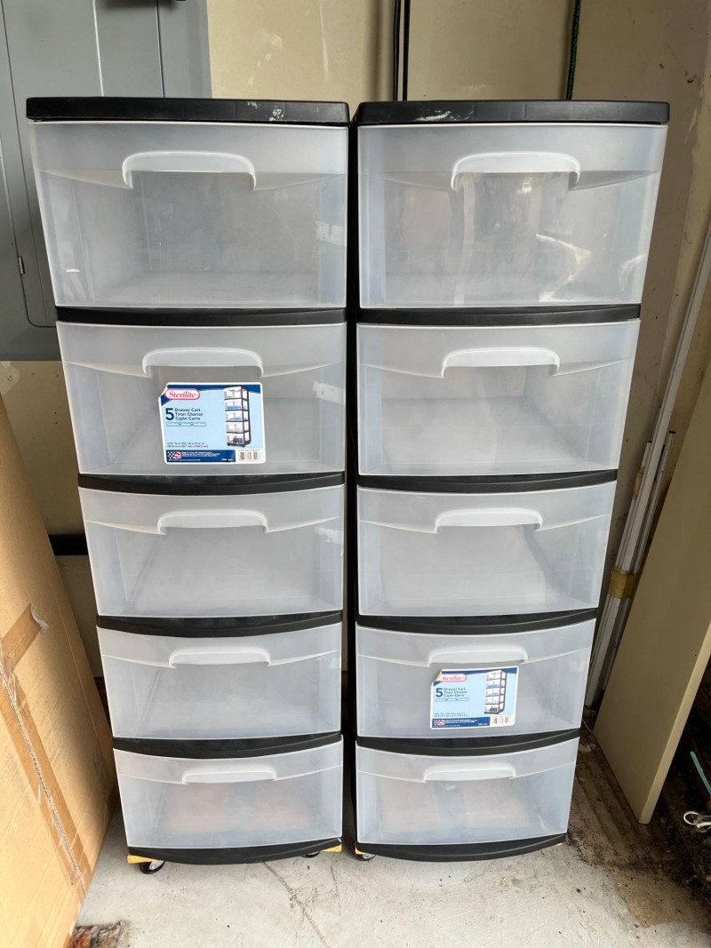 2 Rolling Storage Bins 5 Drawers Each 42” Tall