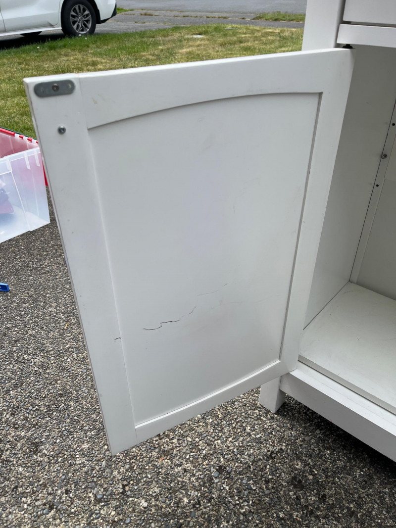 Lot # 123 - White Cabinet w/ Wood Top