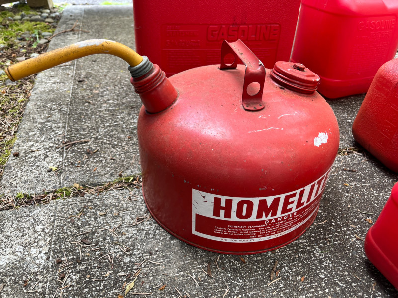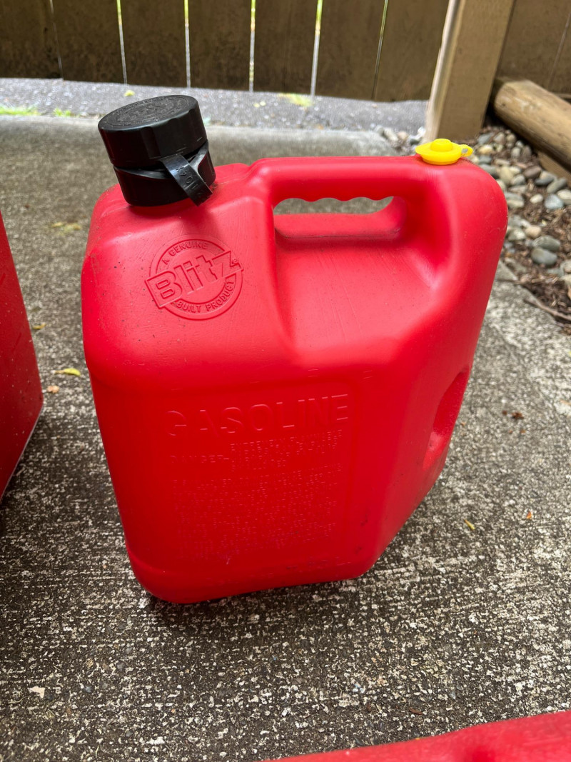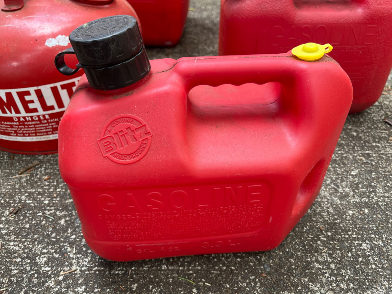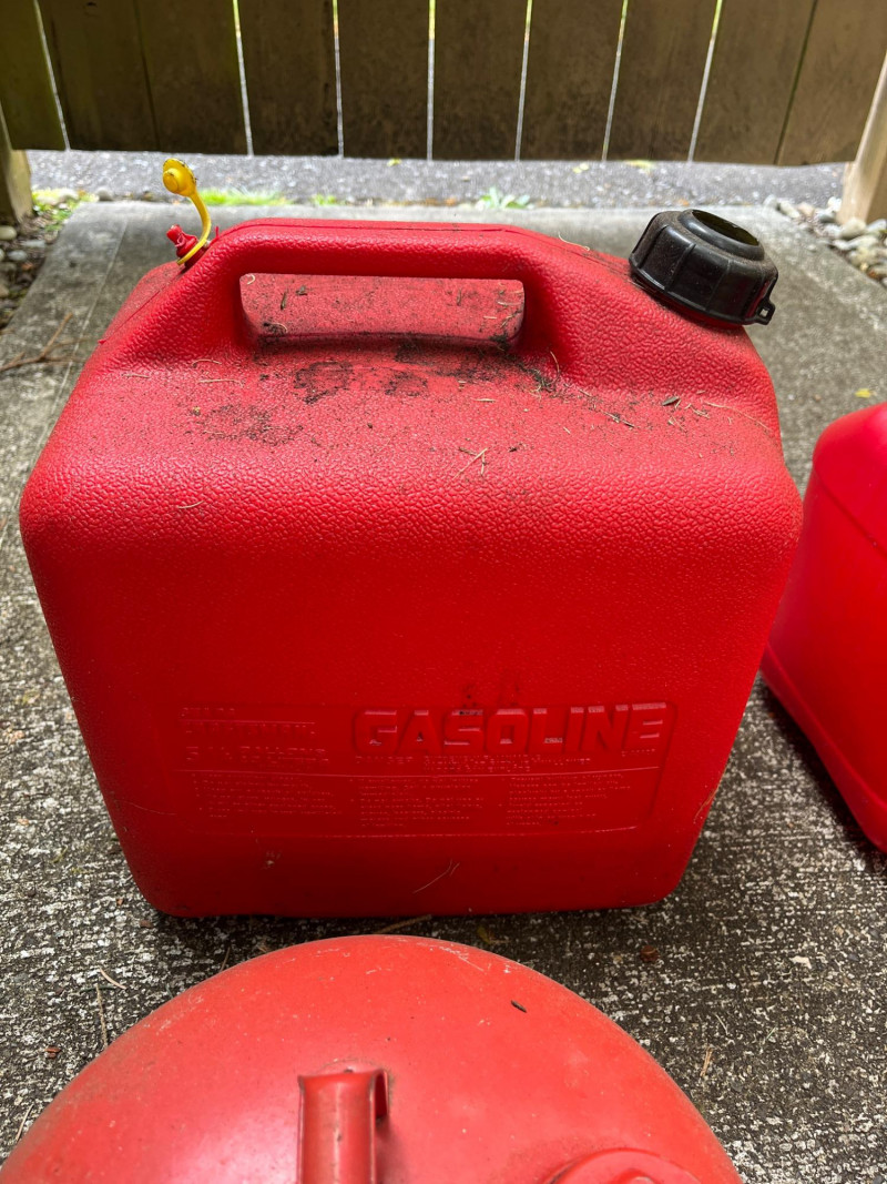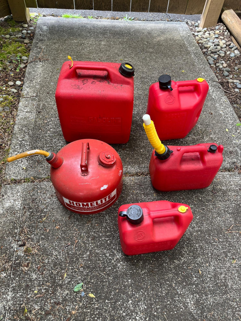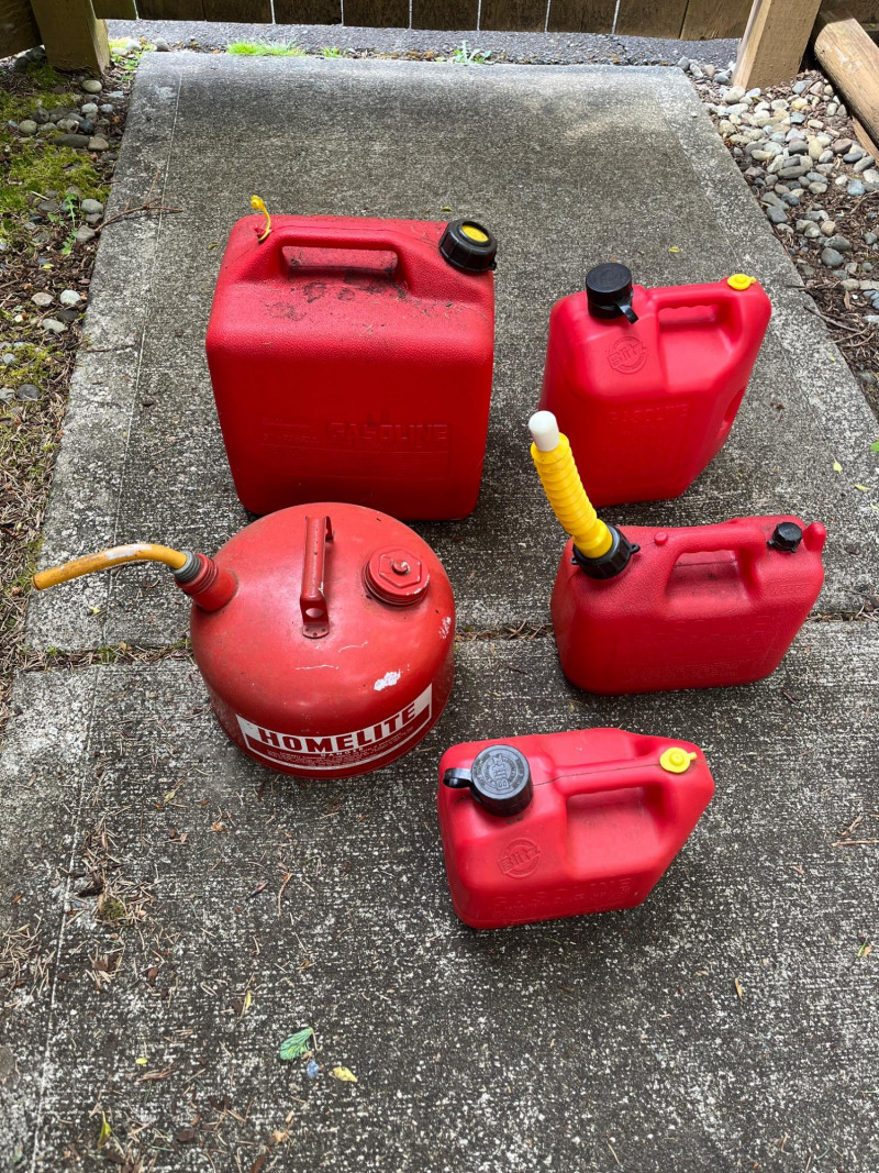 5 Gas Can Lot Some Have Small Amount Of Gas In Cans