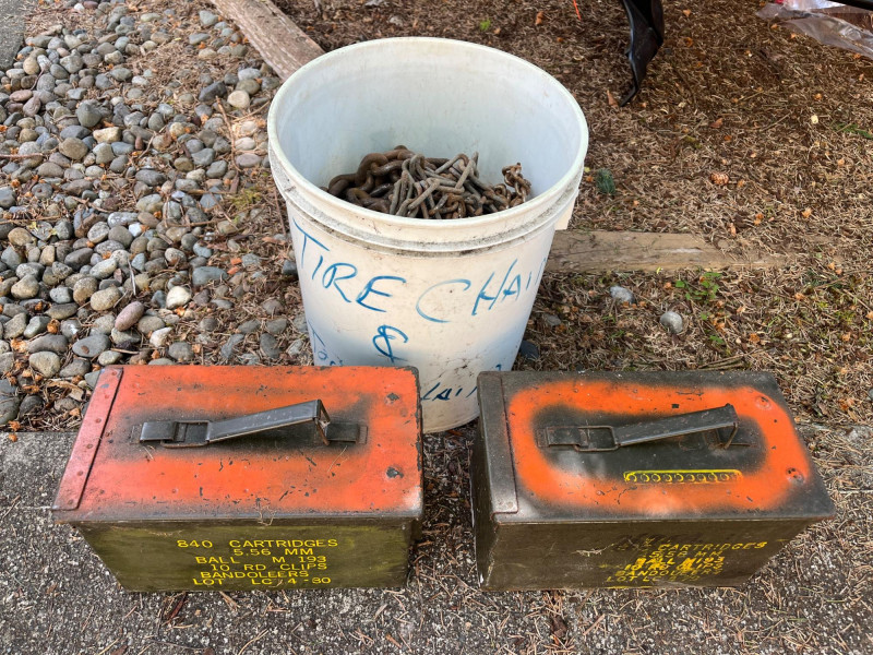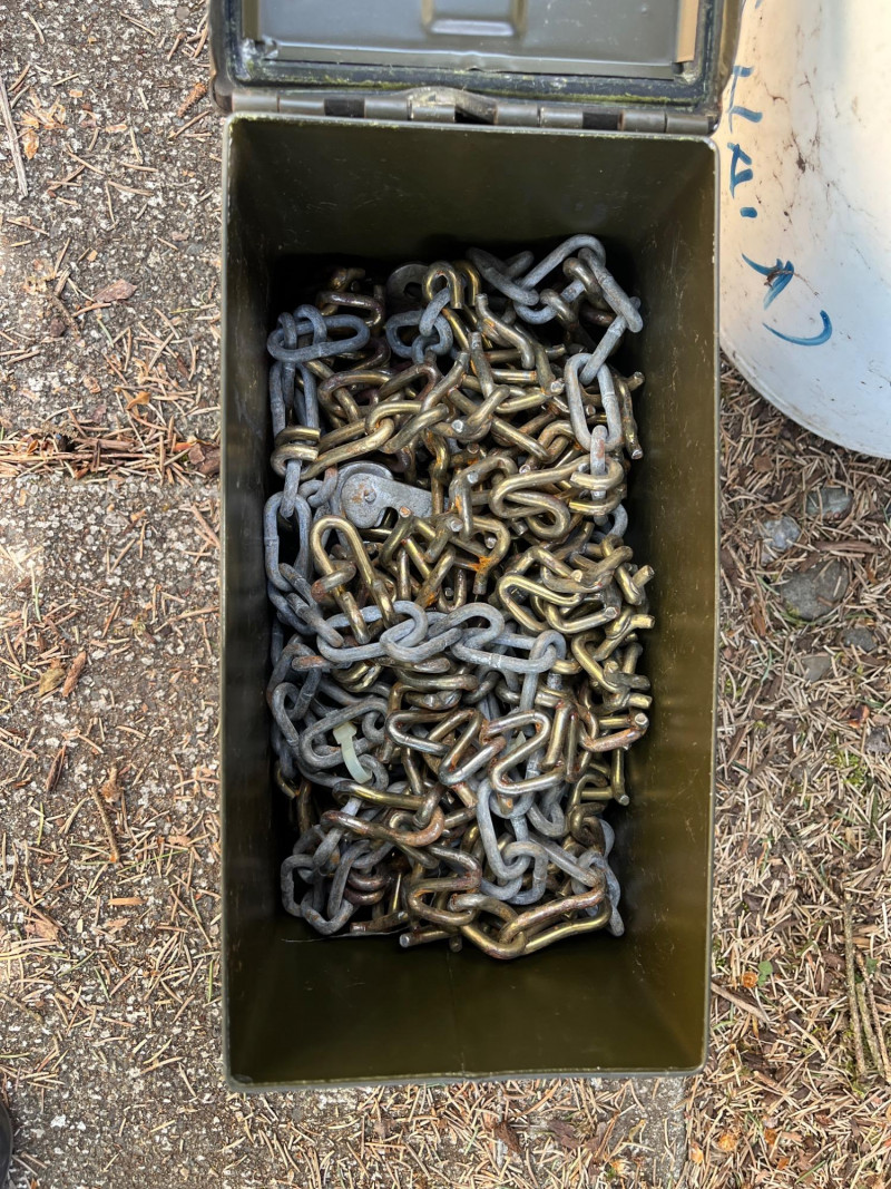 Lot # 143 - Tire & Tow Chains In Ammo Boxes