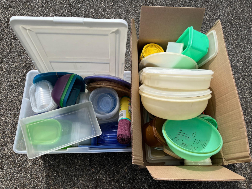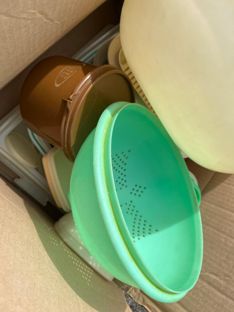 1 Tote & 1 Box Full Of Misc. Tupperware Old & New (Good Condition)