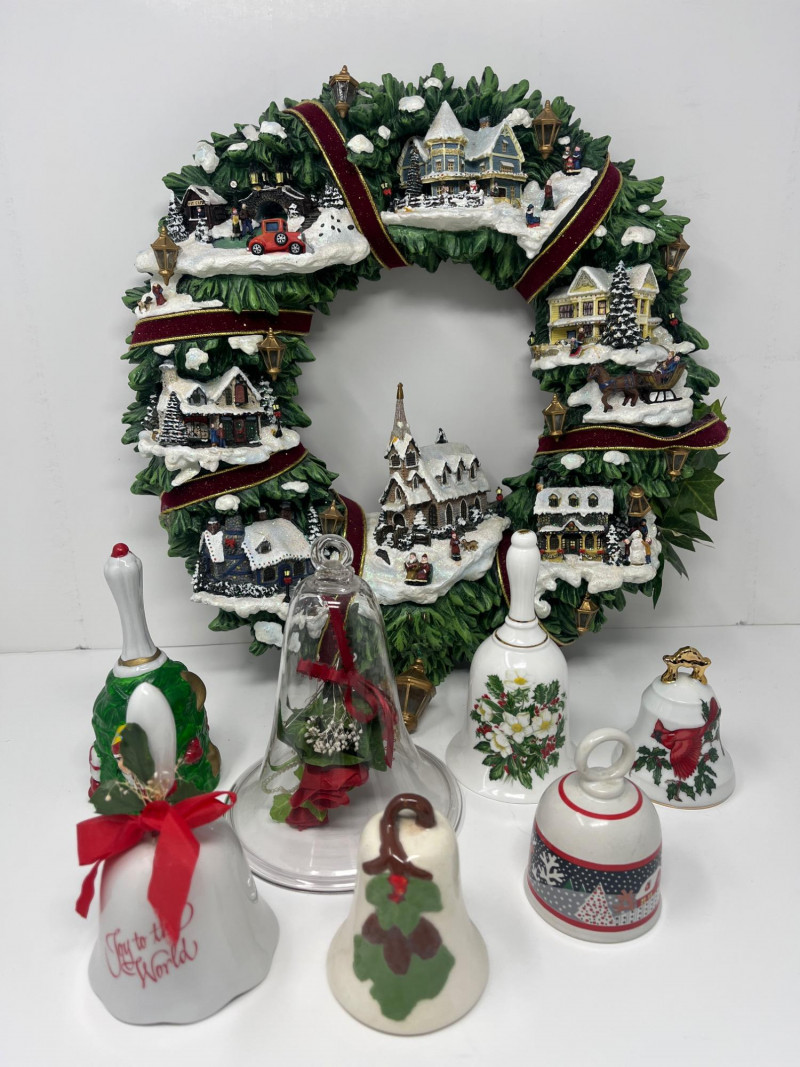 Lot # 171 - Vintage Village Christmas Wreath & Xmas Bells