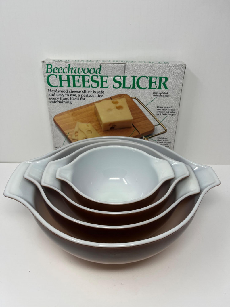 .5 Pint through 4 quart Pyrex (Great condition/no chips or cracks New in box cheese slicer