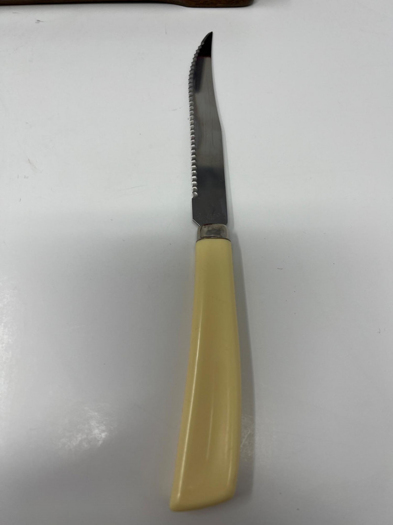 Lot # 204 - Vintage Quikut Serrated Steak Knives MCM Tenite Cream Handles