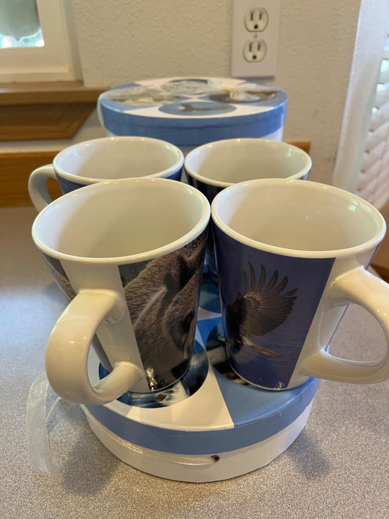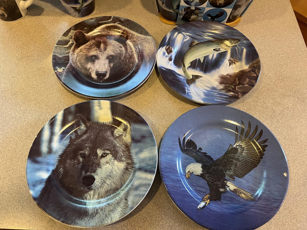 Animal Themed Plates/Mugs (16pc) Eagle, Bear, Wolf, Fish (2 Plates & 2 Mugs of Ea. Animal)