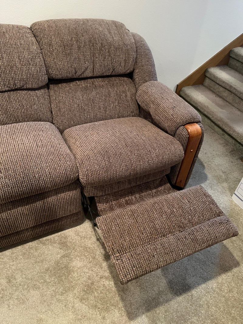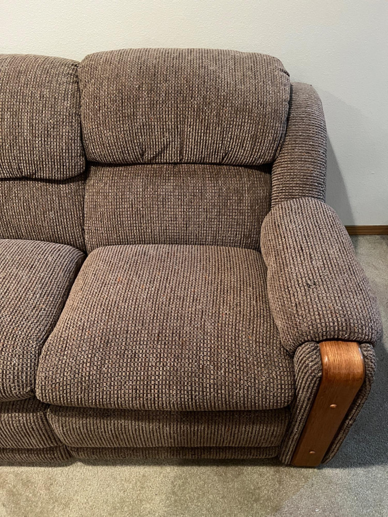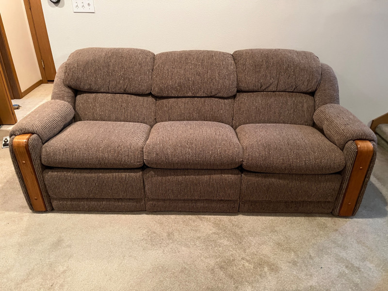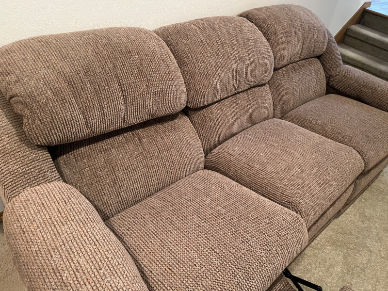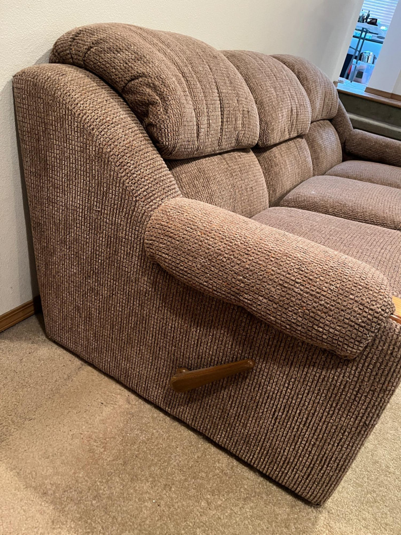 Tan/Brown Couch w/ Recline Options 84” Length Great Condition! No rips/tears. Pet free/smoke free home Each end reclines. Middle does not