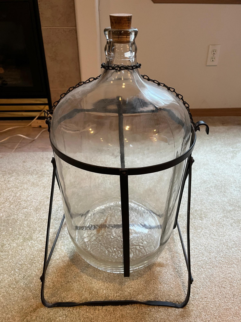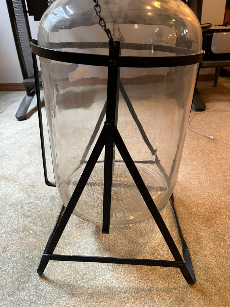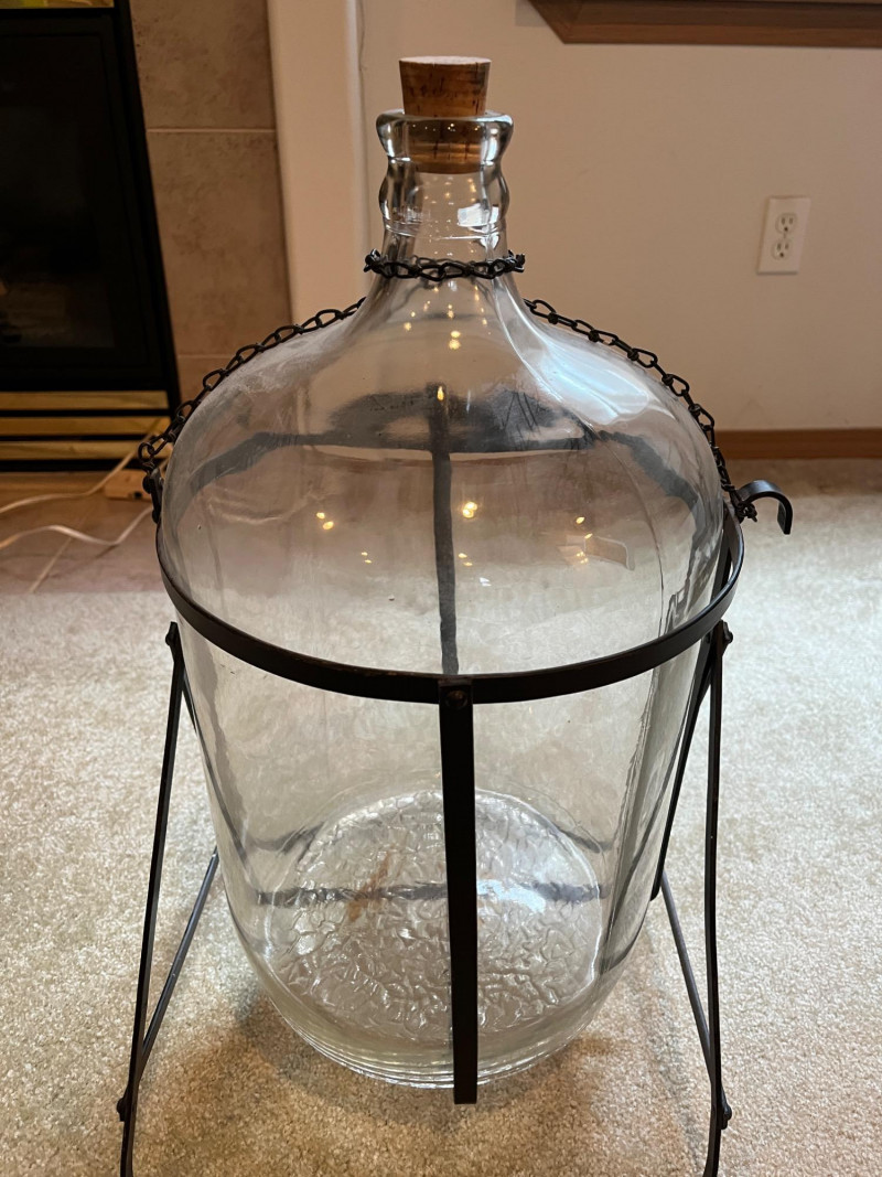 Vintage 5 Gallon Glass Jug & Tipping Stand Very Cool Piece! Jug In Great Condition! No Chips Or Cracks! 2 feet tall