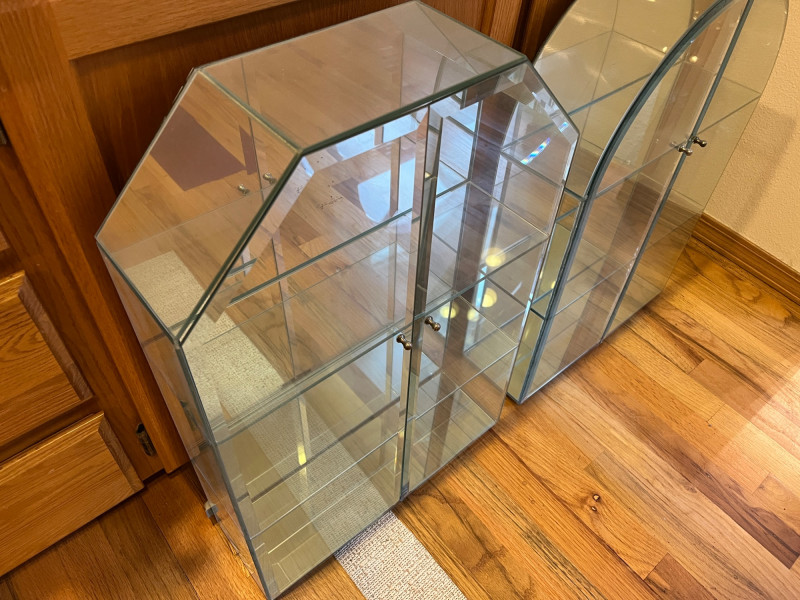 2 Glass Wall Display Shelves 3 Glass Shelves Per Each Display Case Both Display Cases Measures 24 x 16 x 5 Great Condition!