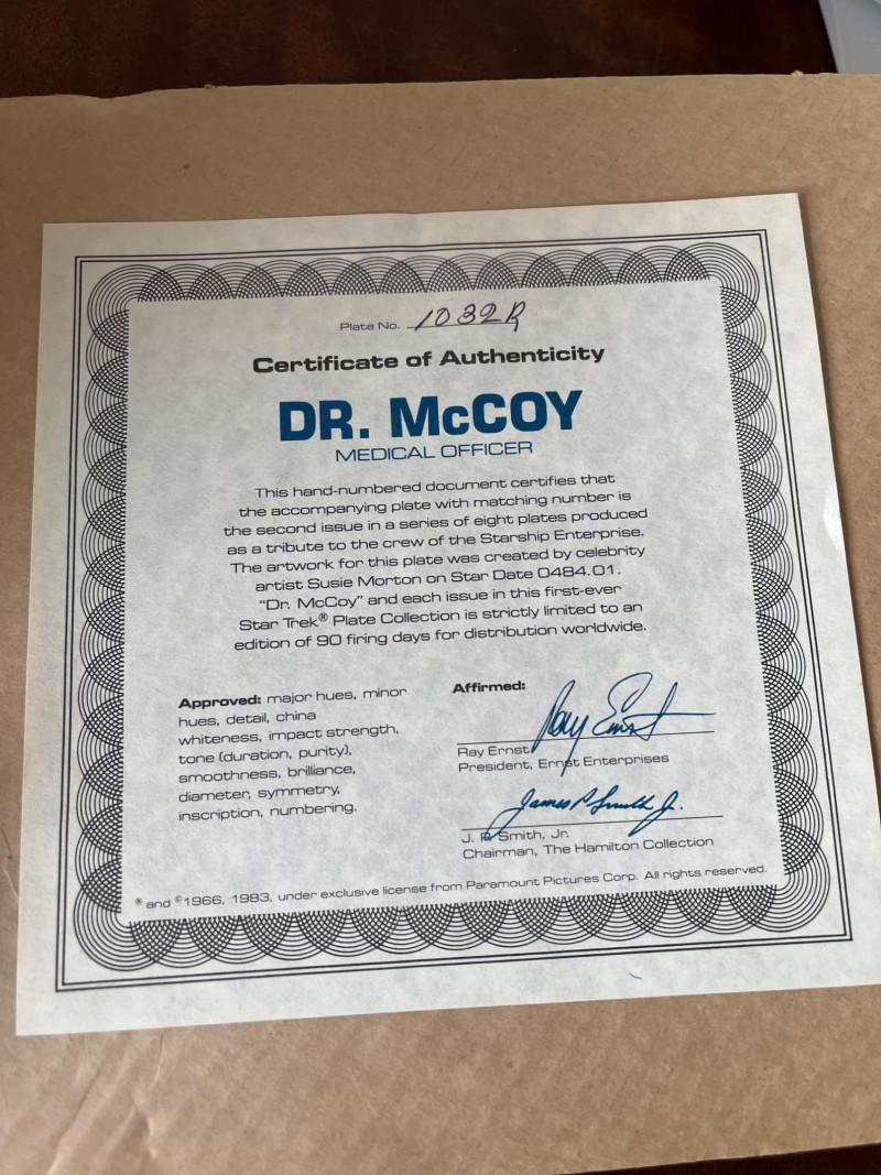 1983 Rare Star Trek “Starship Enterprise” 8 Plate Set 6 in box 2 without box Original COA's Also Included Great Condition