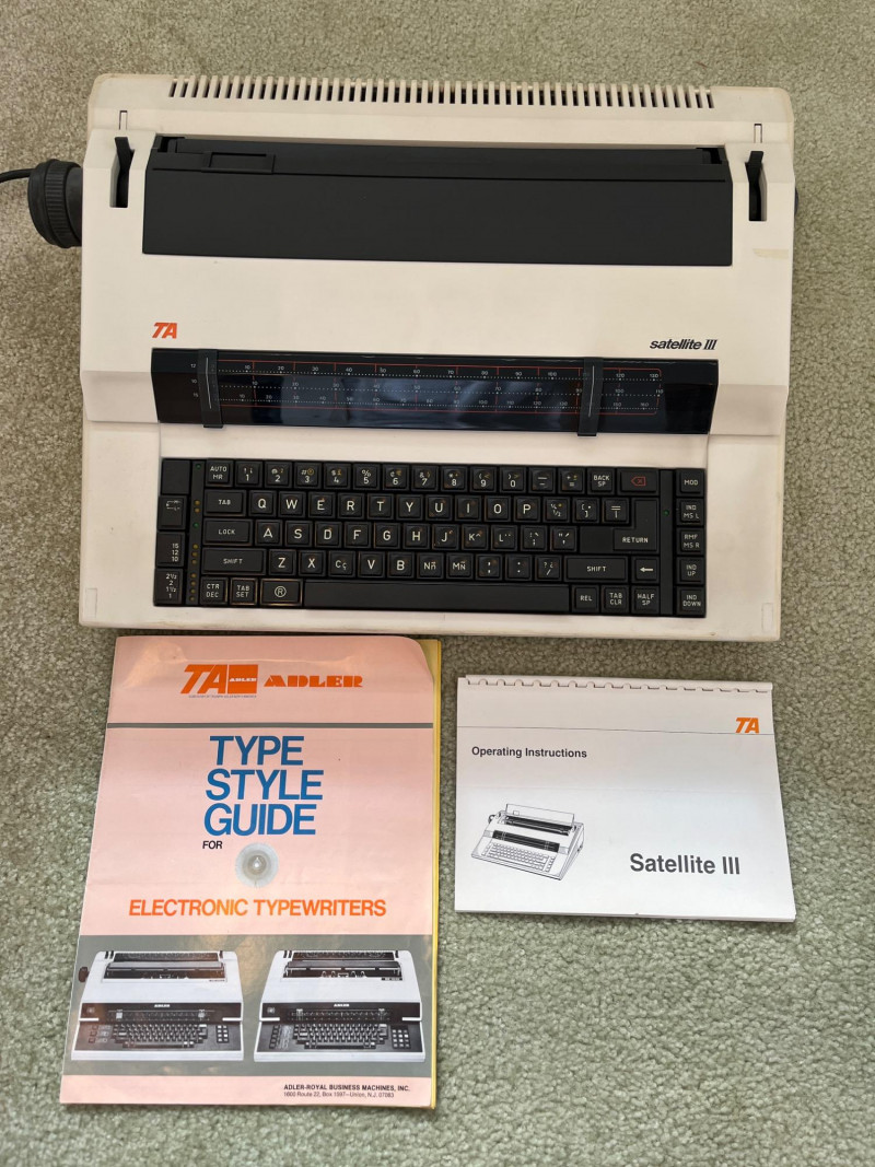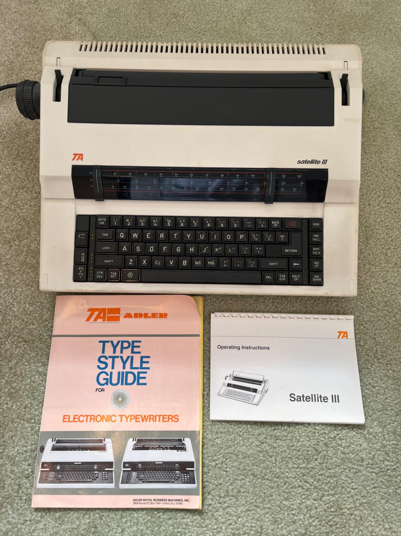 Adler Electronic “Satellite III” Typewriter Includes Original Manuals