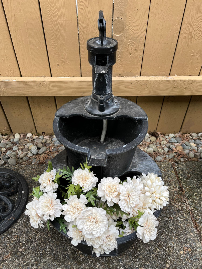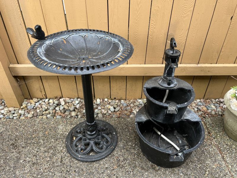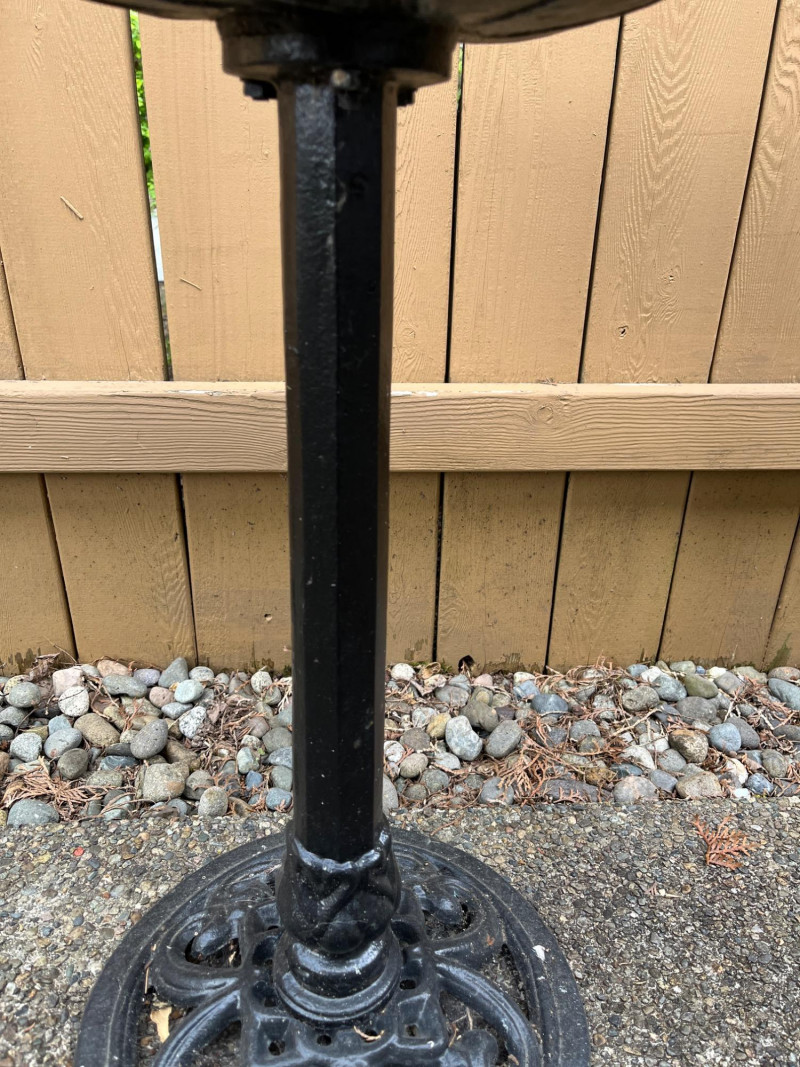 Cast Iron Bird Bath 30” Tall Plastic Water Fountain (Fountain Untested) 27” Tall