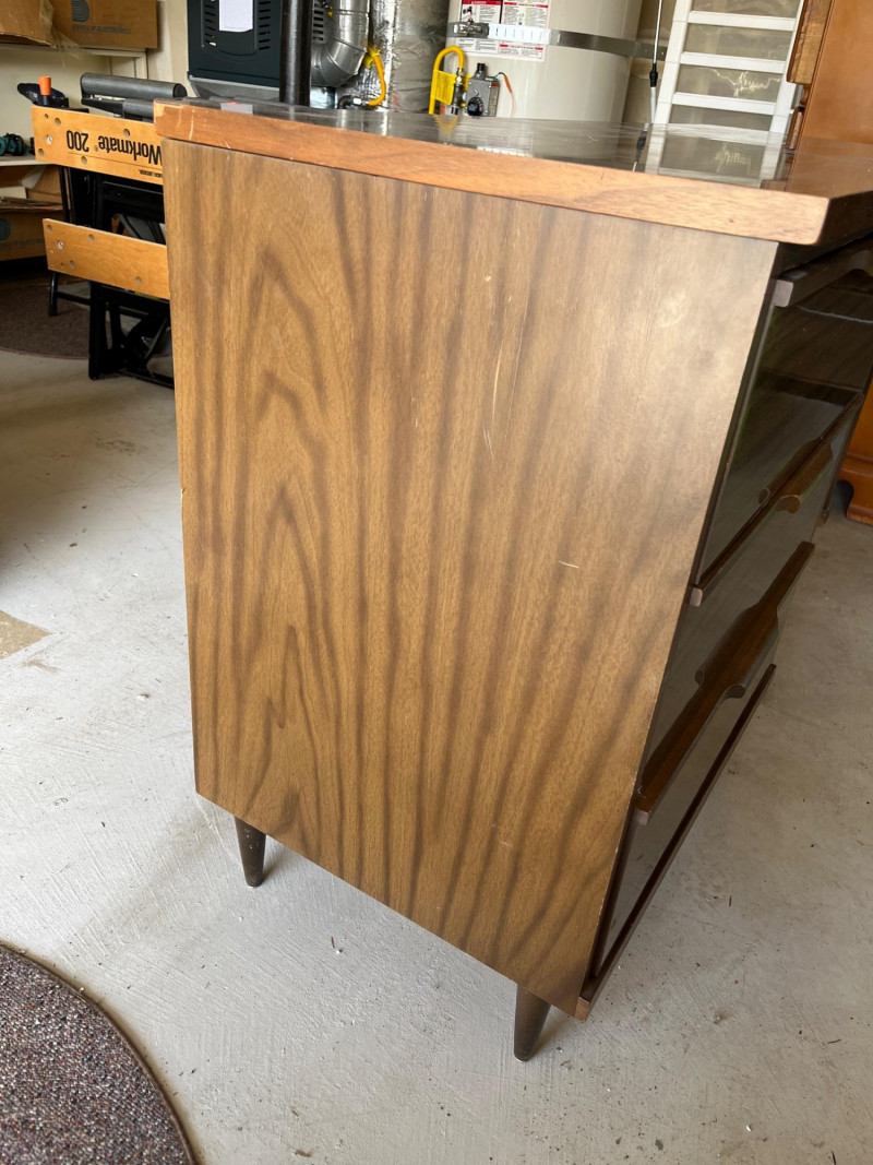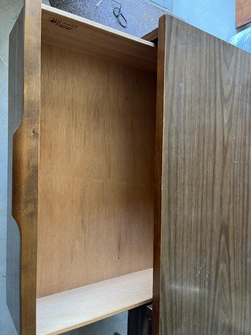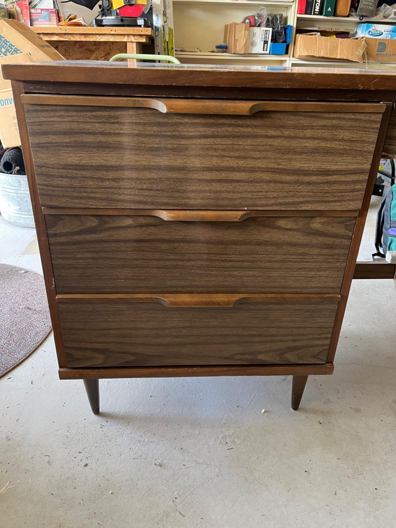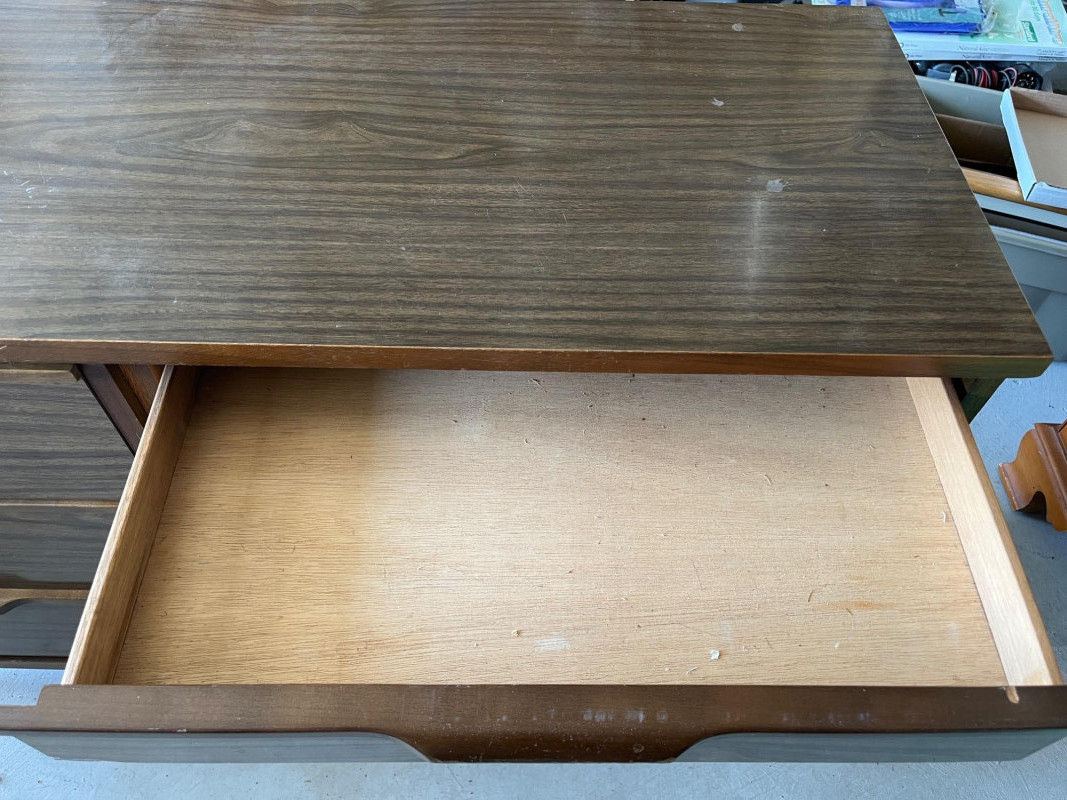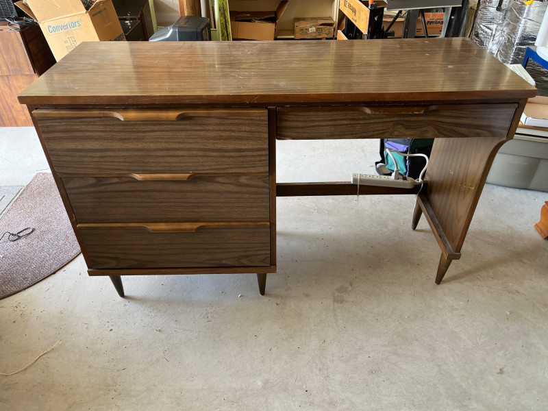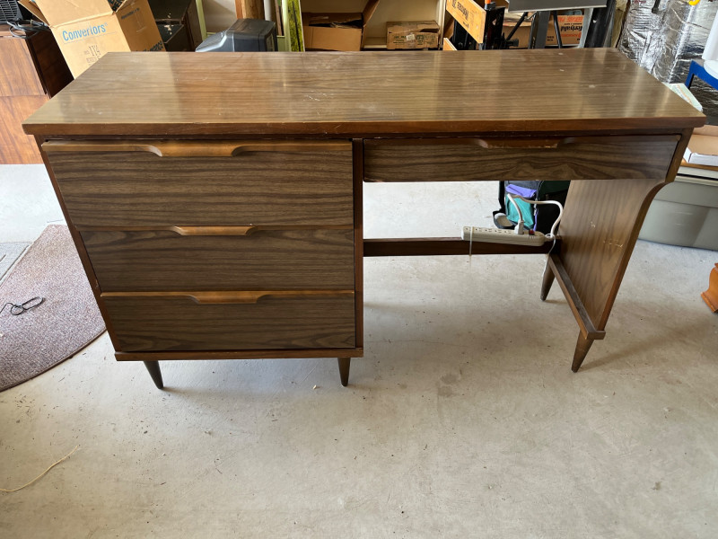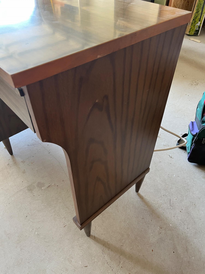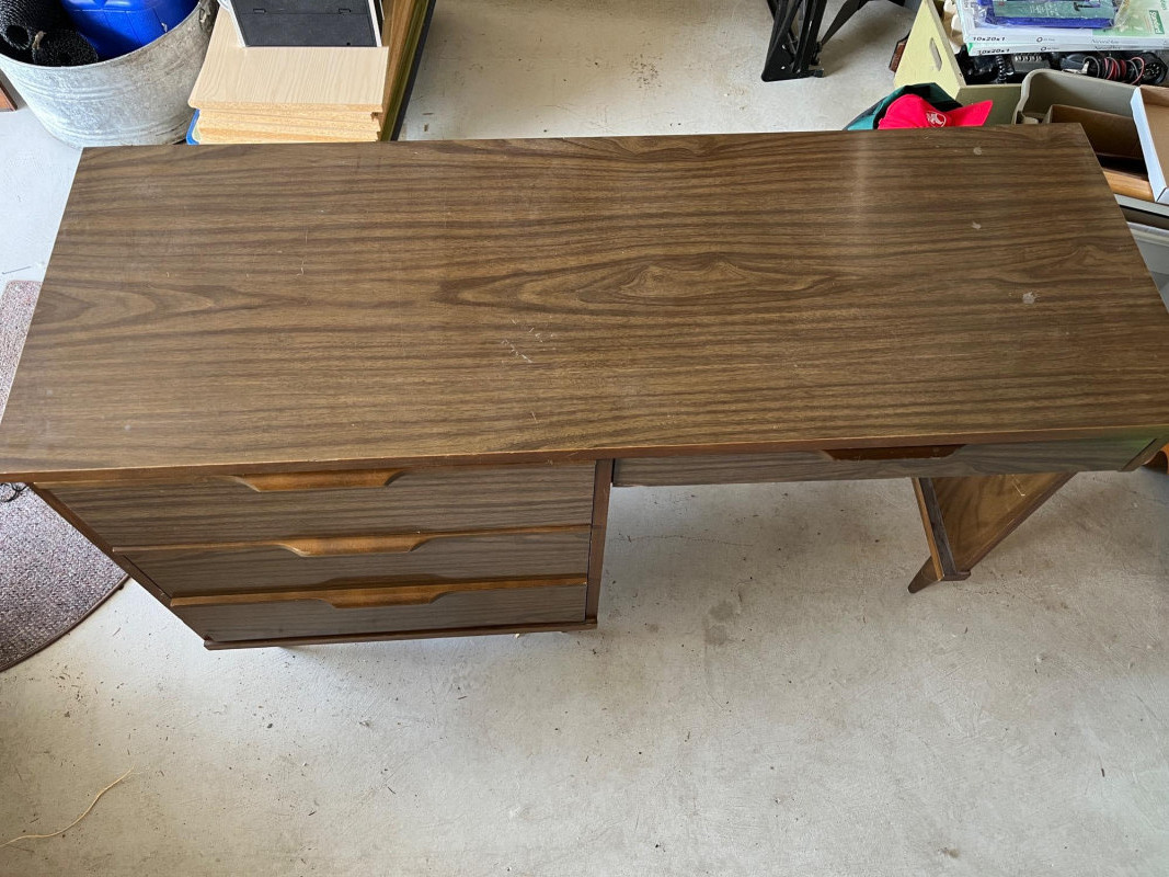 Harmon Mfg. Mid Century Walnut Vintage Desk 3 Drawers On Left Side of Desk & Pull Out Drawer 50x18x32”H