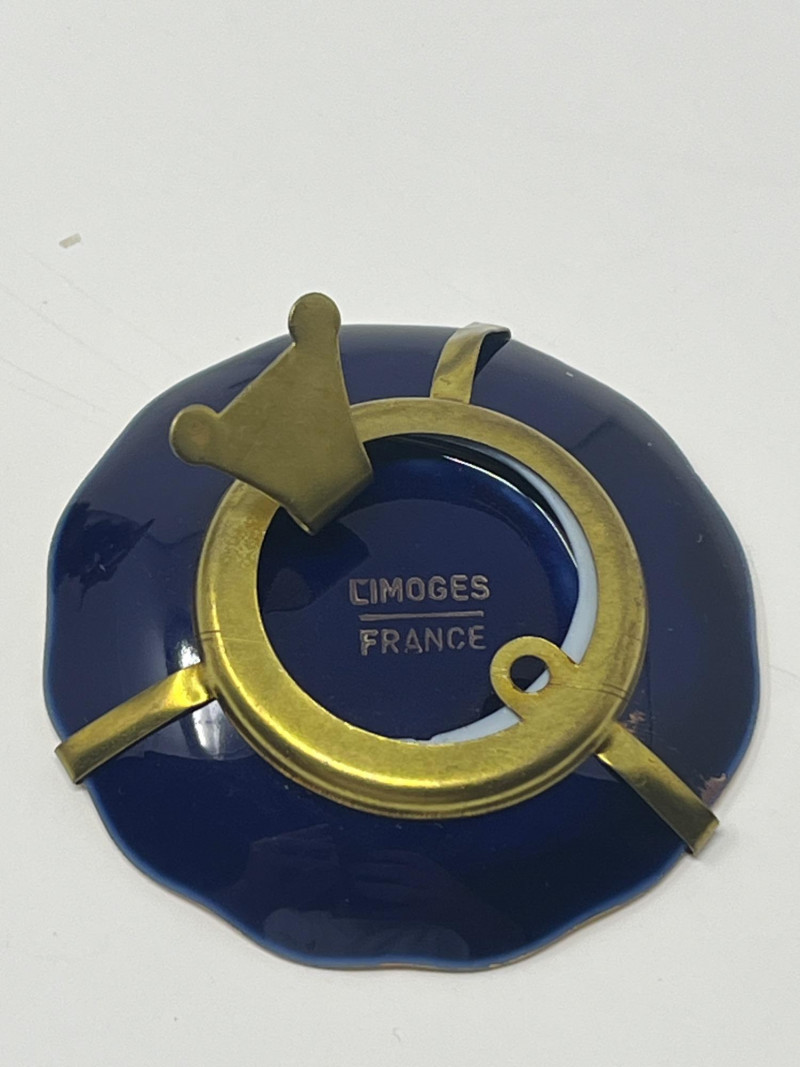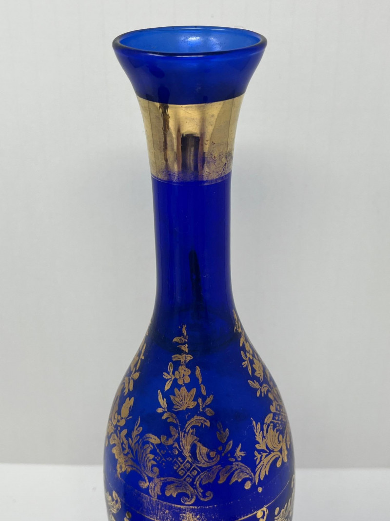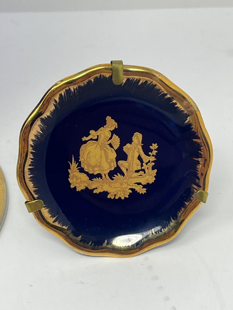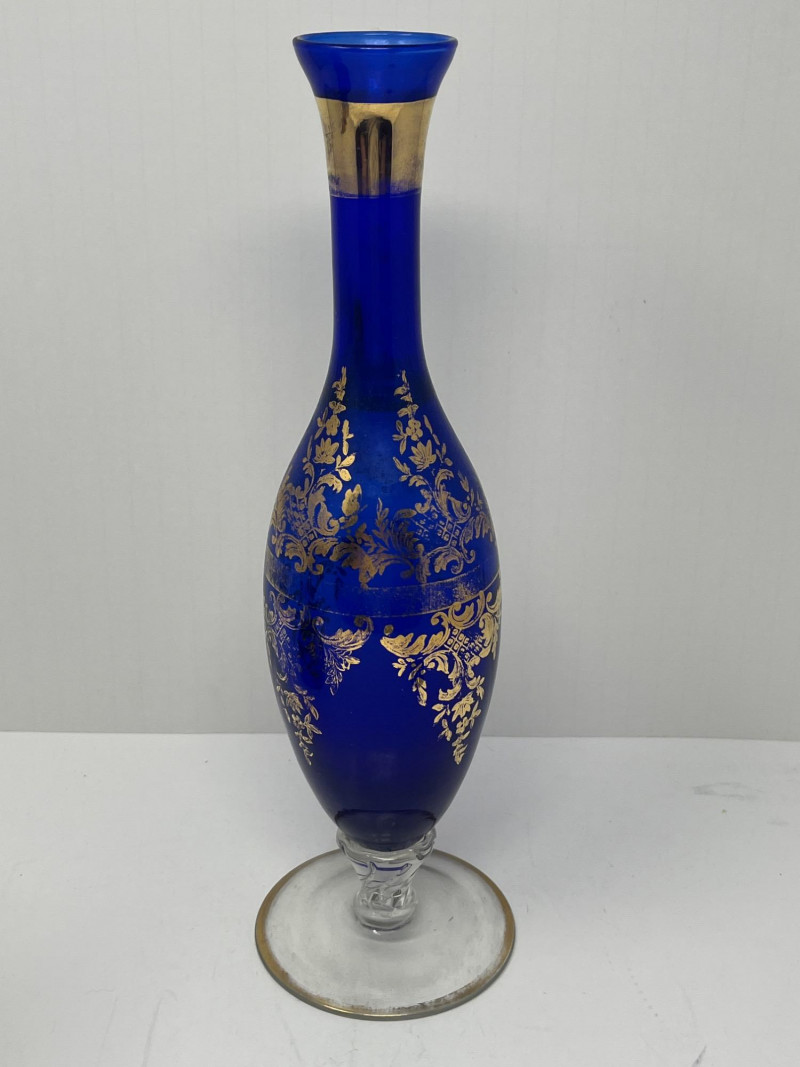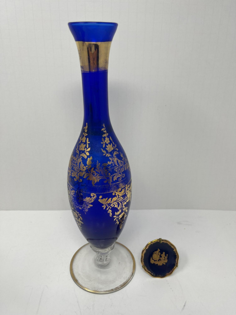 Venetian Gold & Cobalt Blue Art Glass Vase 13" Tall Limoges Miniature Porcelain Plate