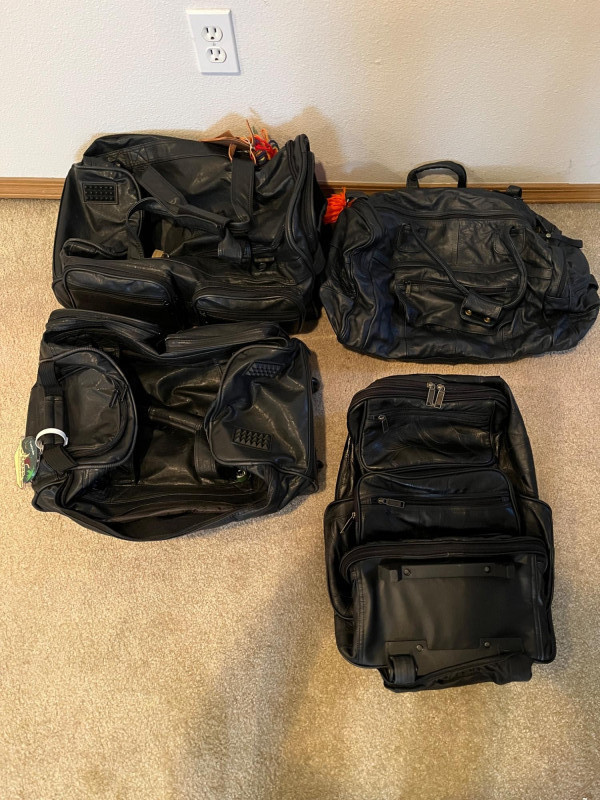 Vintage Genuine Black Leather Luggage (4 Pieces)