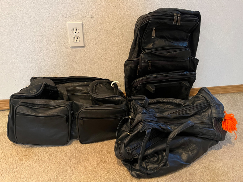 Lot # 286 - Vintage Genuine Black Leather Luggage (4 Pieces)