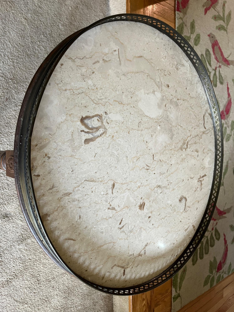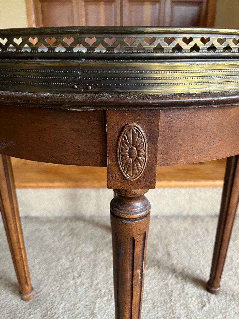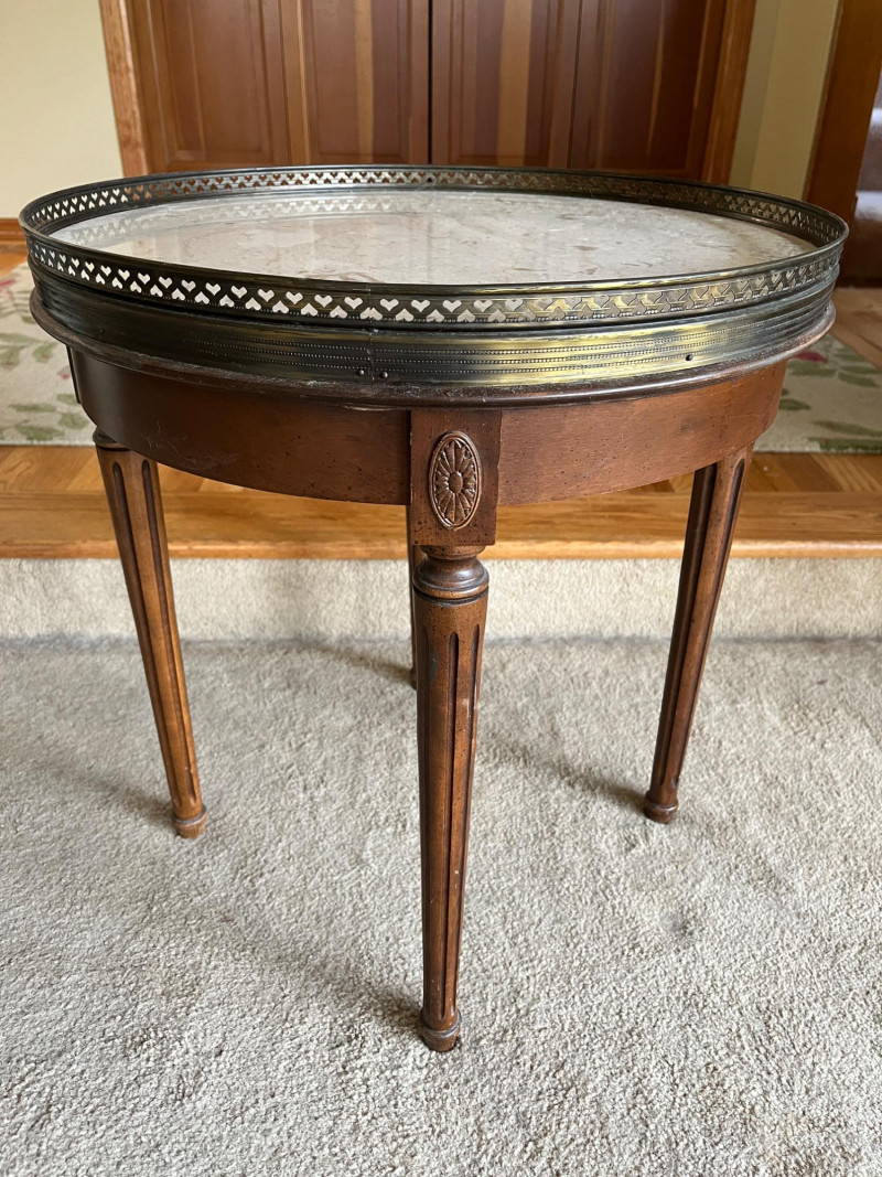 Vintage French Wine/Side Table Gorgeous Brass & Marble Top! Circa 1950's-1960's Diameter 22" Table Height 22"