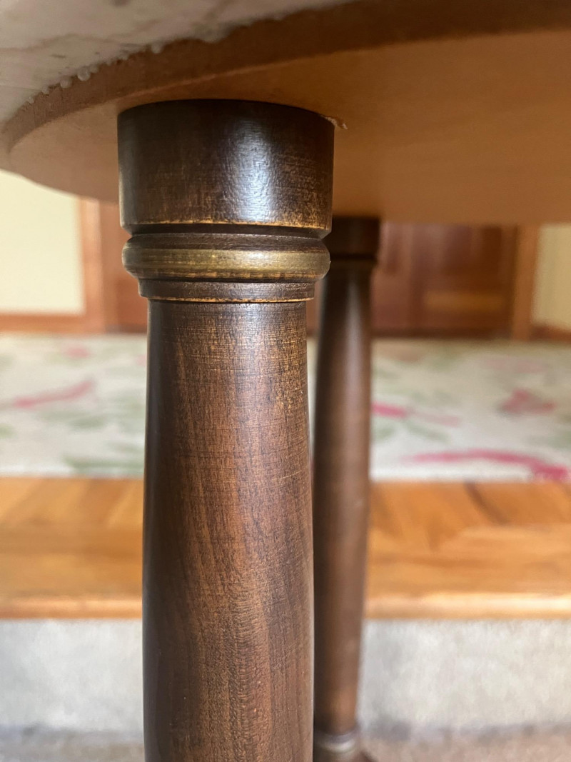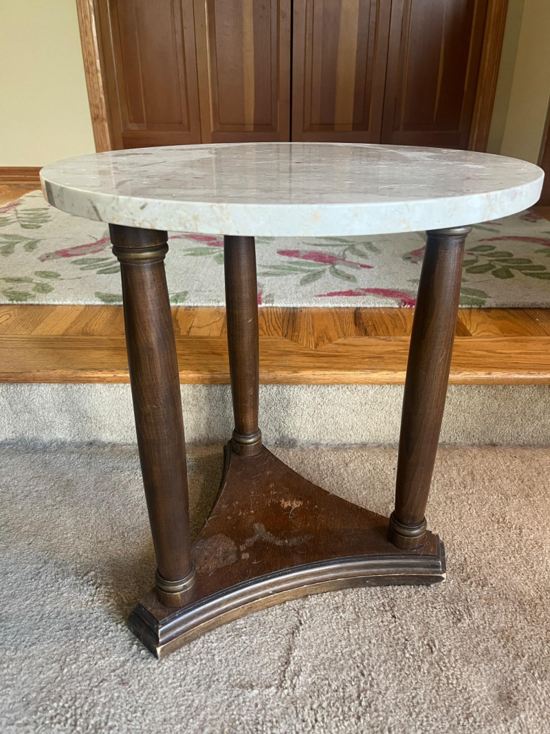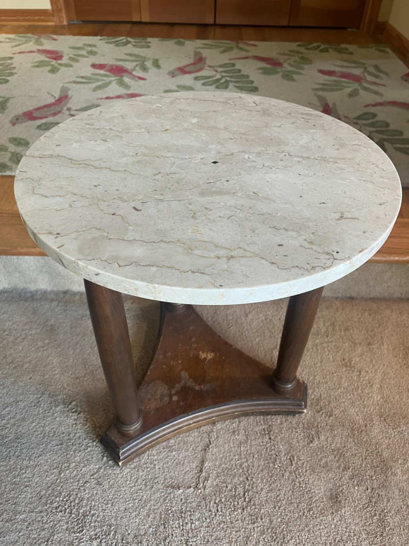 Mahogany/Marble Table 18" Diameter 19" Height See Wear On Base Of Table Cool Piece!