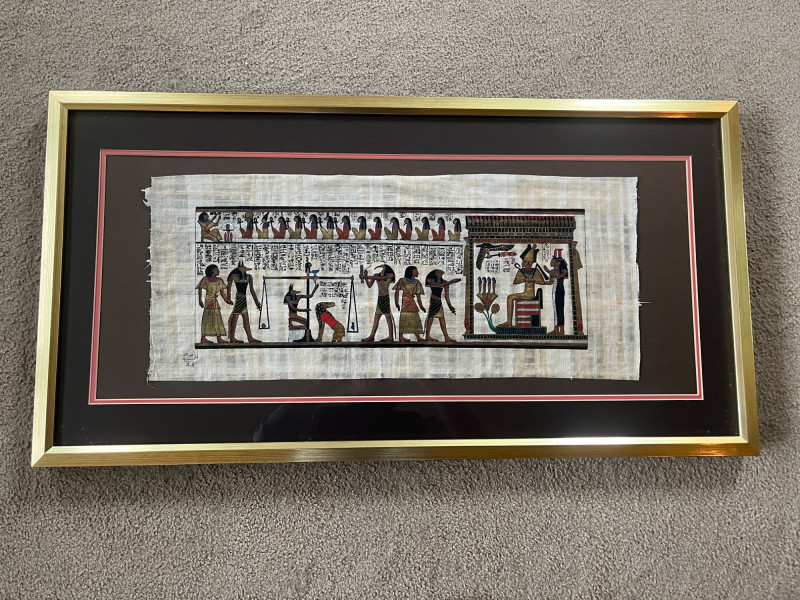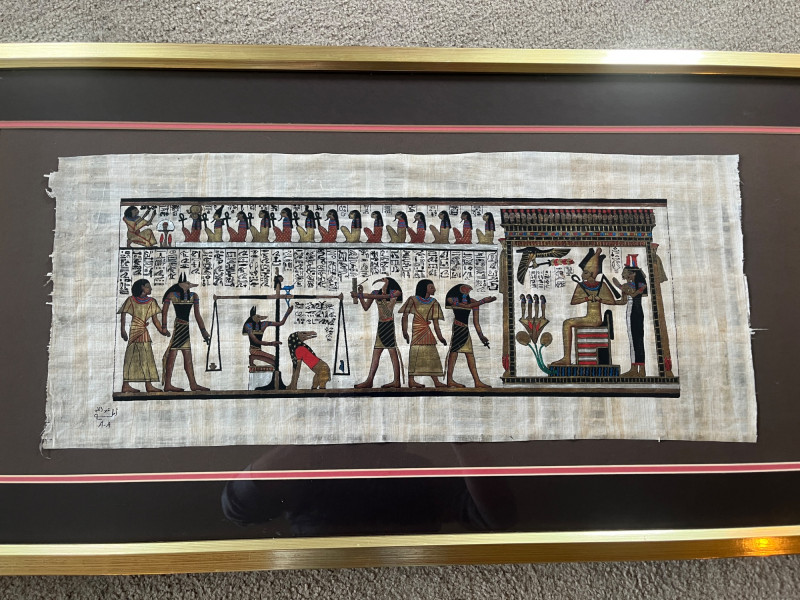 Lot # 1 - Antique Hand Painted "The Final Judgement" Egyptian Papyrus Art