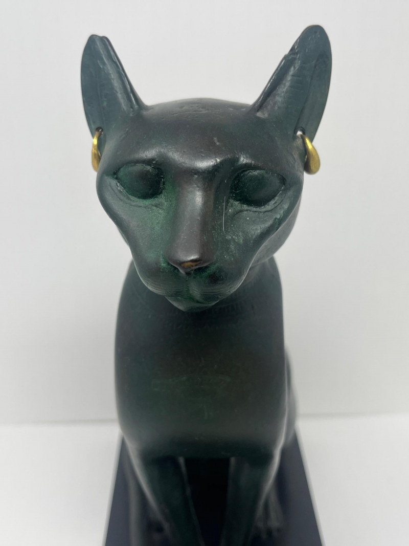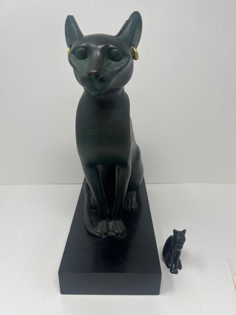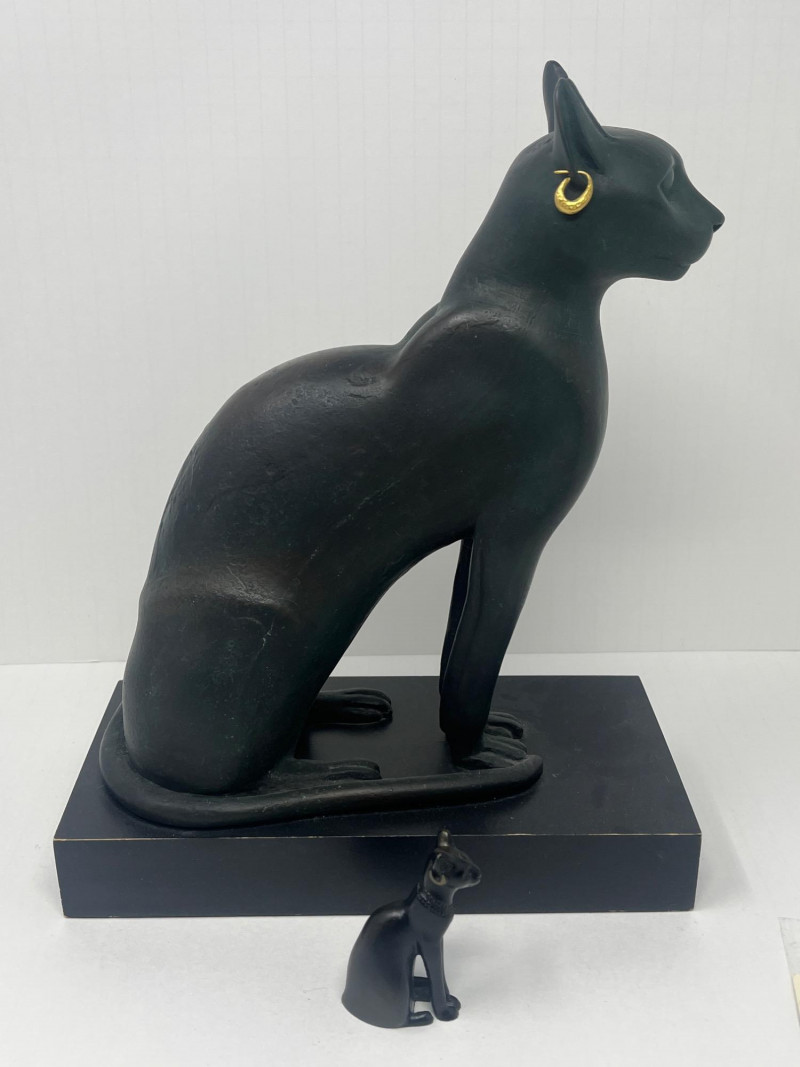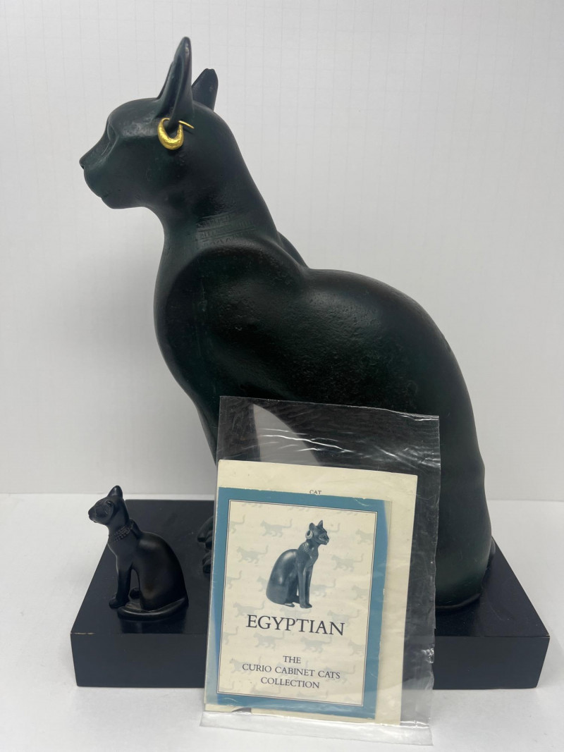 Franklin Mint "Bastet" Brass Sculpture Circa 1980's Bonded Brass Made by Franklin Mint From The Curio Cabinet Cat Collection Mini Figurine Also Included In Lot