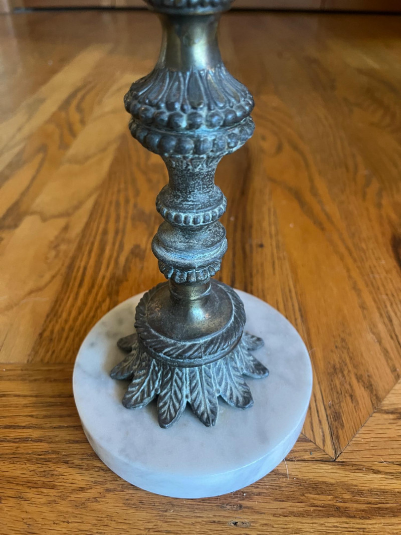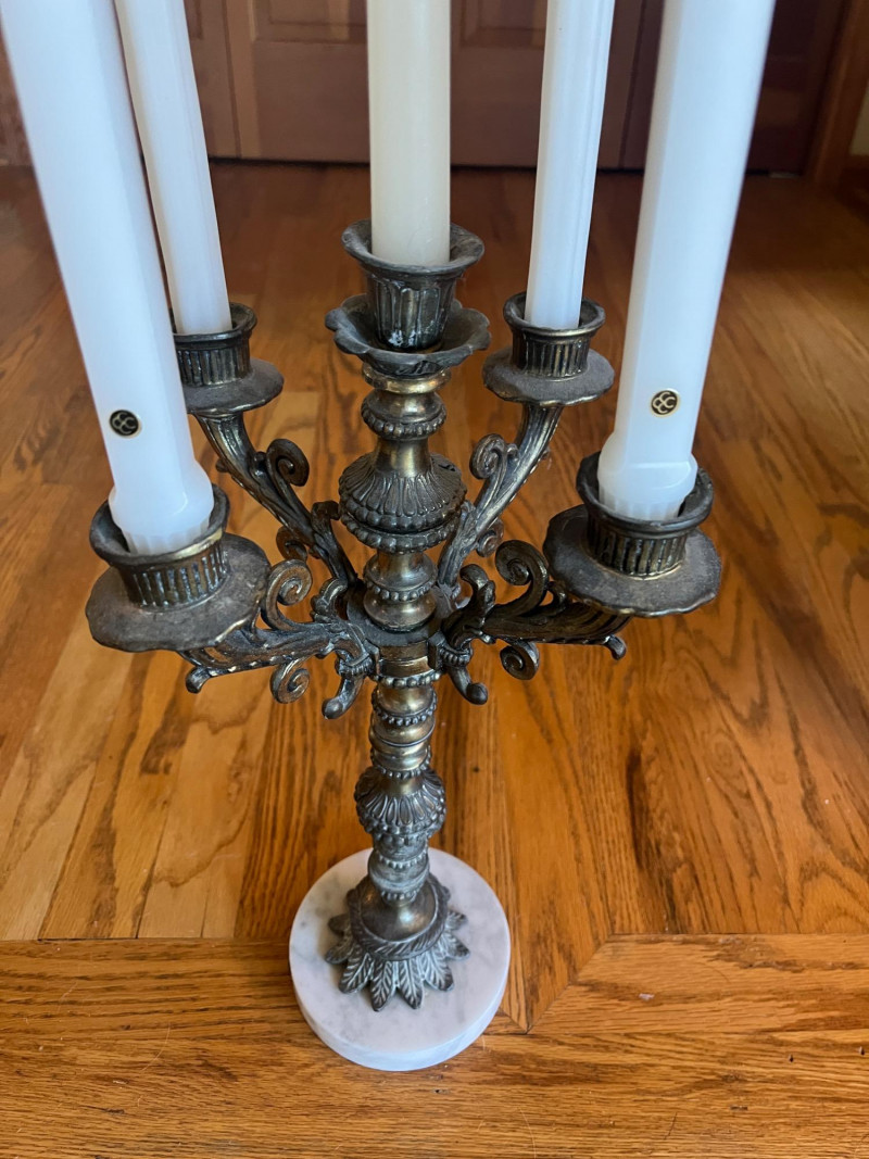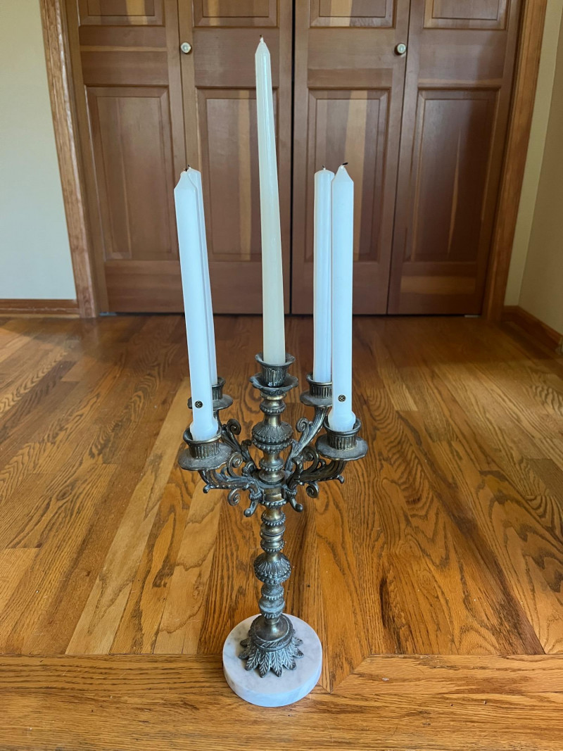 Gorgeous Antique Bronze or Brass 5 Light Candelabra Marble Base 17" Height