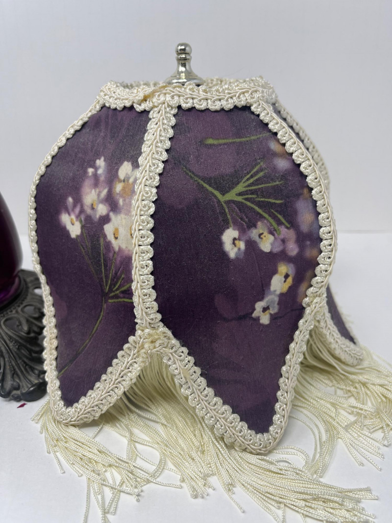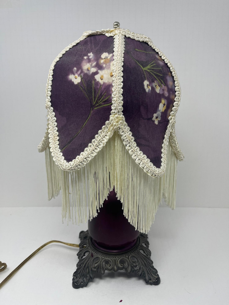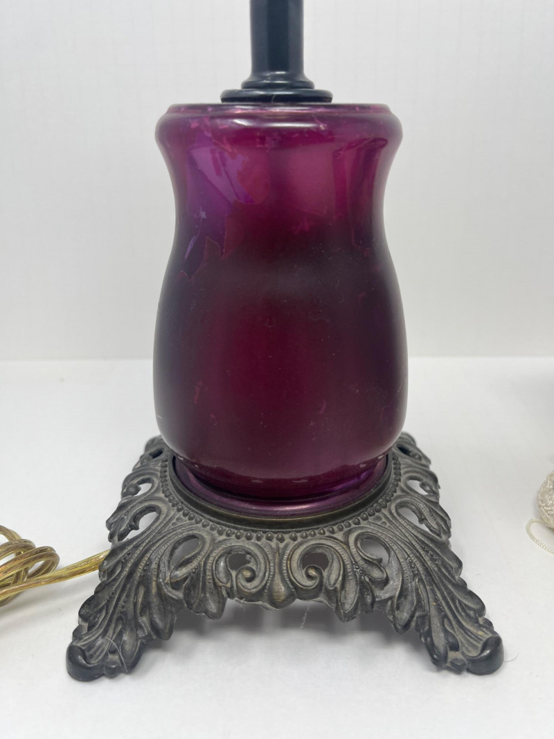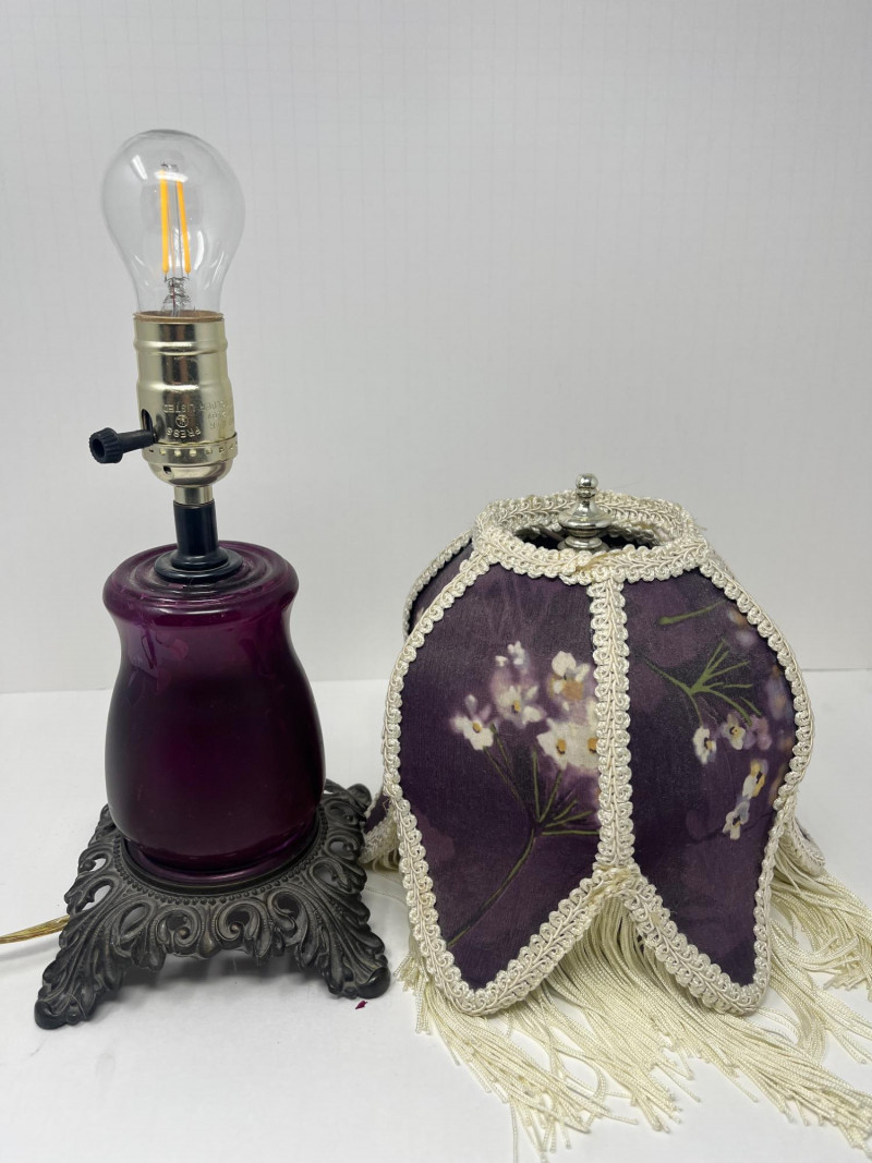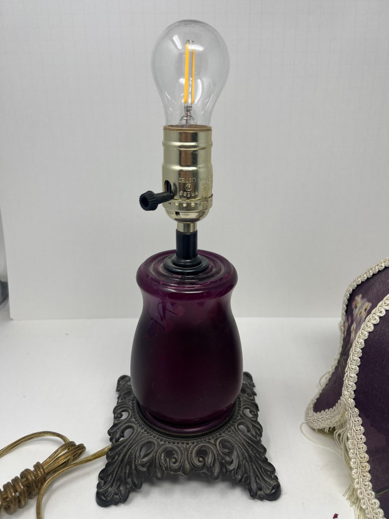 Antique Victorian Table Lamp Plum Victorian Floral Lamp Shade Pedestal Base 15" Tall