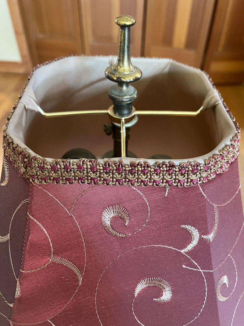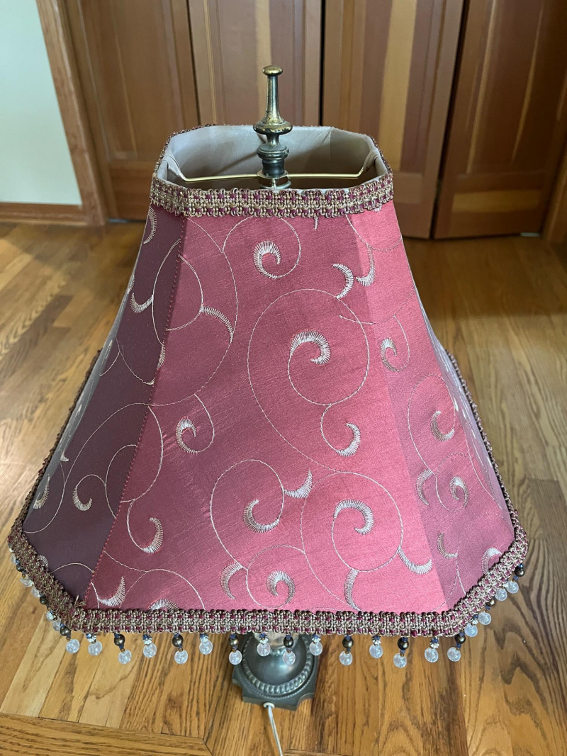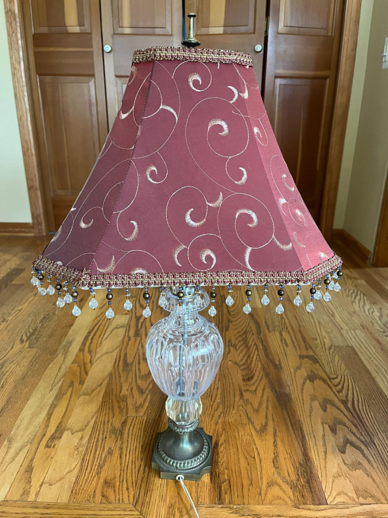 Vintage Urn Shaped Cut Glass Lamp Maroon Colored Shade w/ Detailed Tassles. 30" Total Height Tested & Working