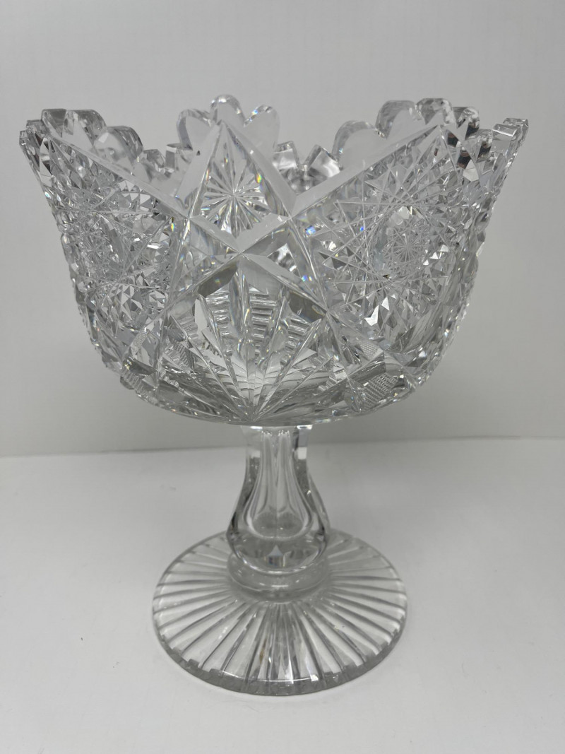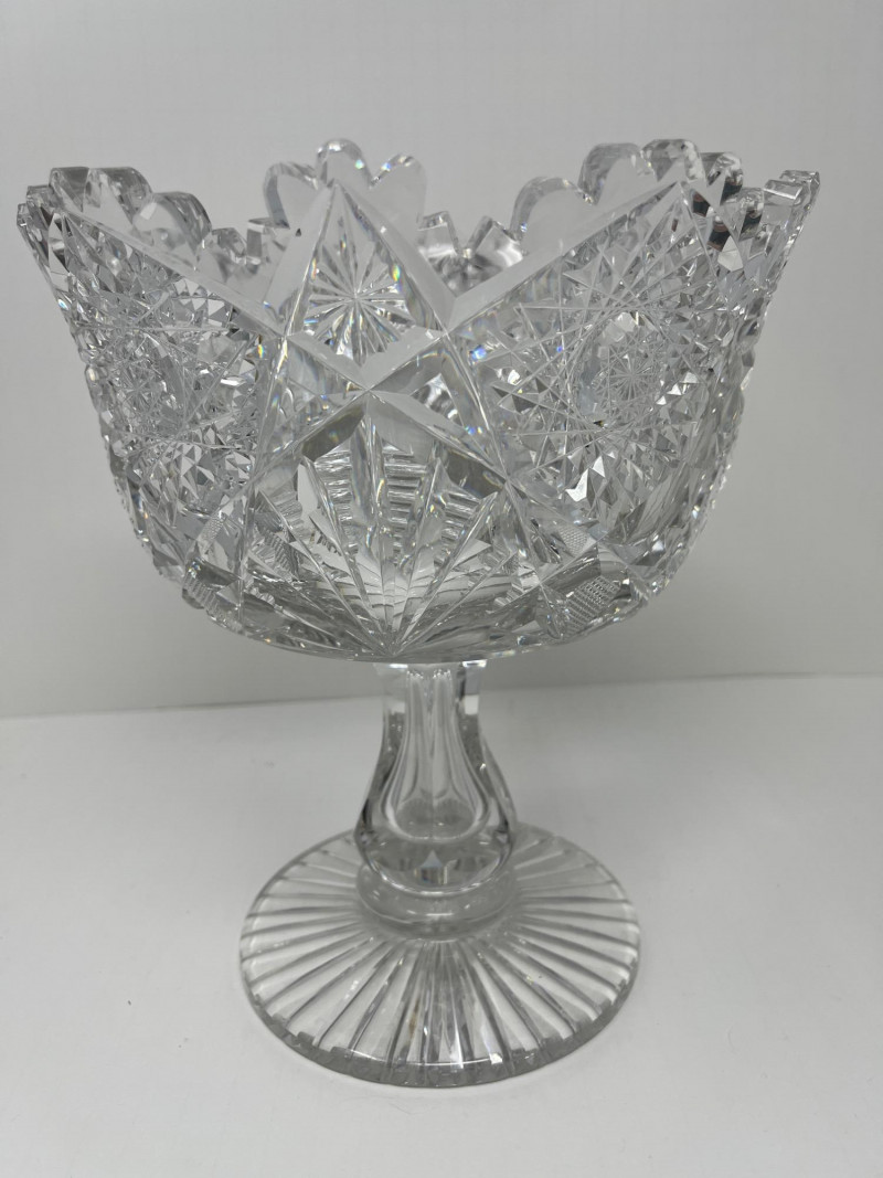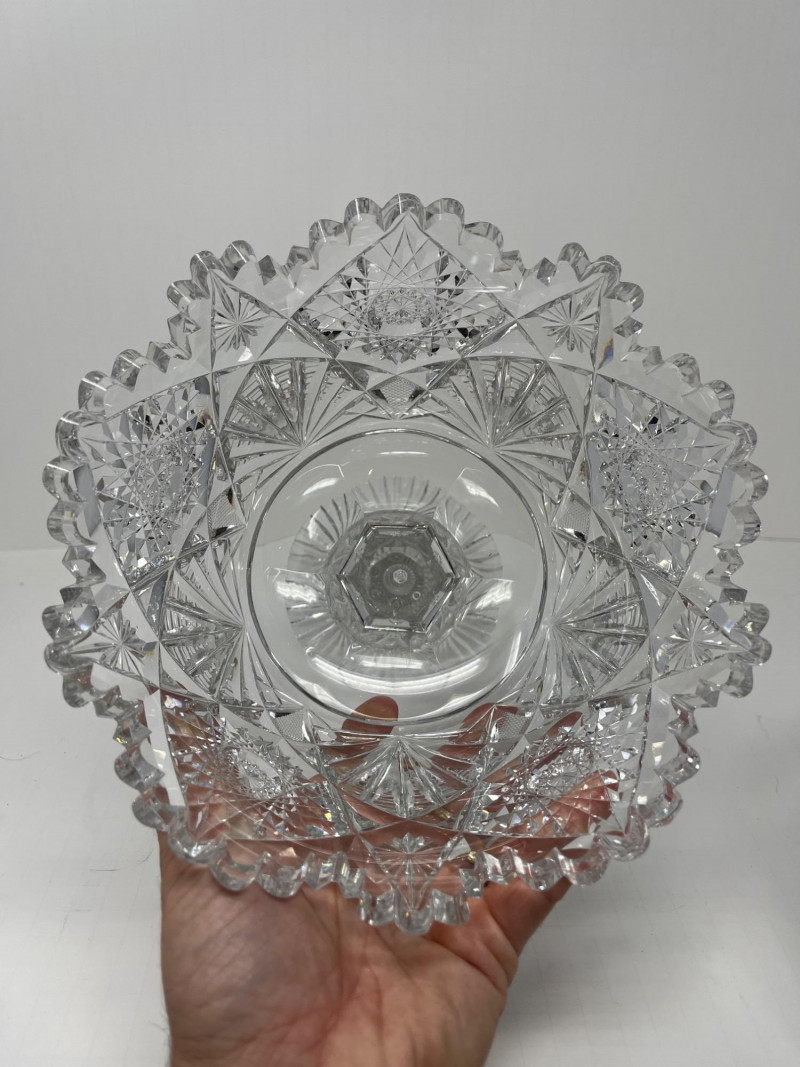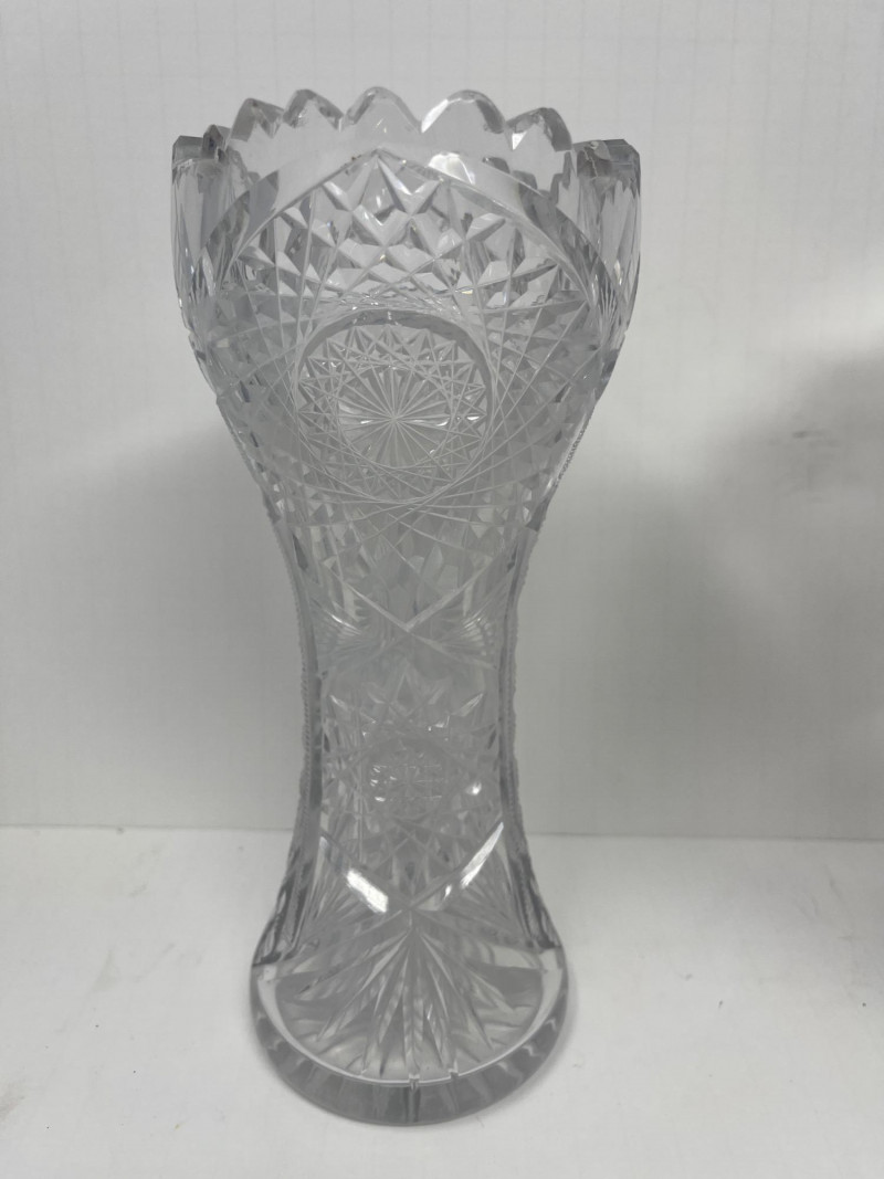 Cut Glass Bowl & Vase 10" Cut Glass Bowl w/ Gorgeous Detailing & Scalloped Edges (No Chips) 9" Cut Glass Vase (No Chips)