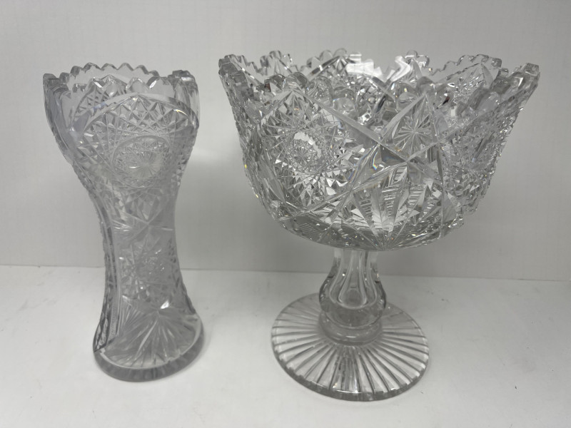 Lot # 41 - Vintage Cut Glass Bowl & Vase