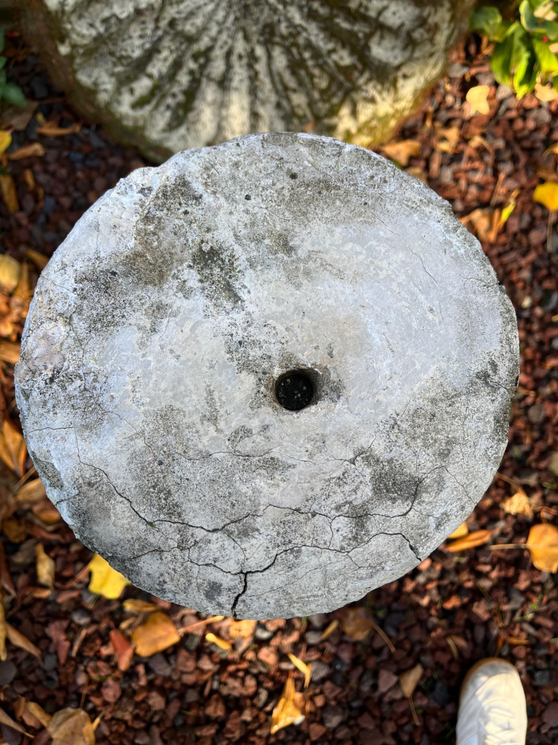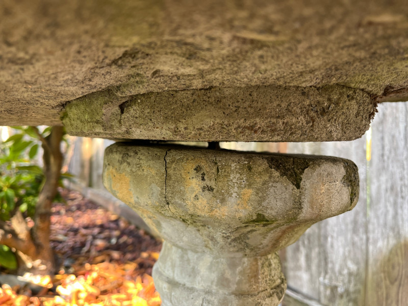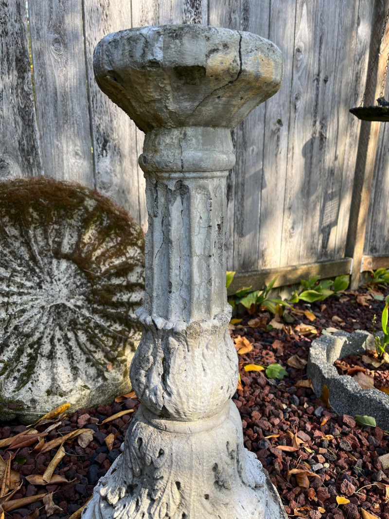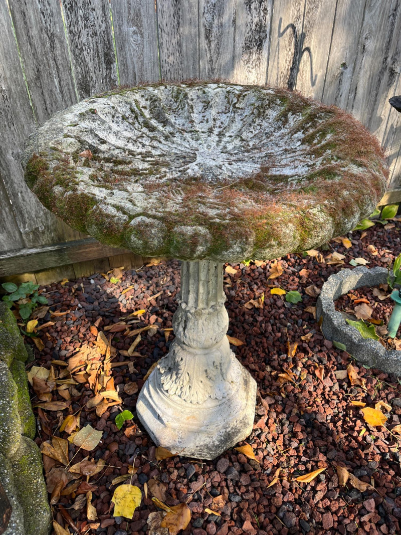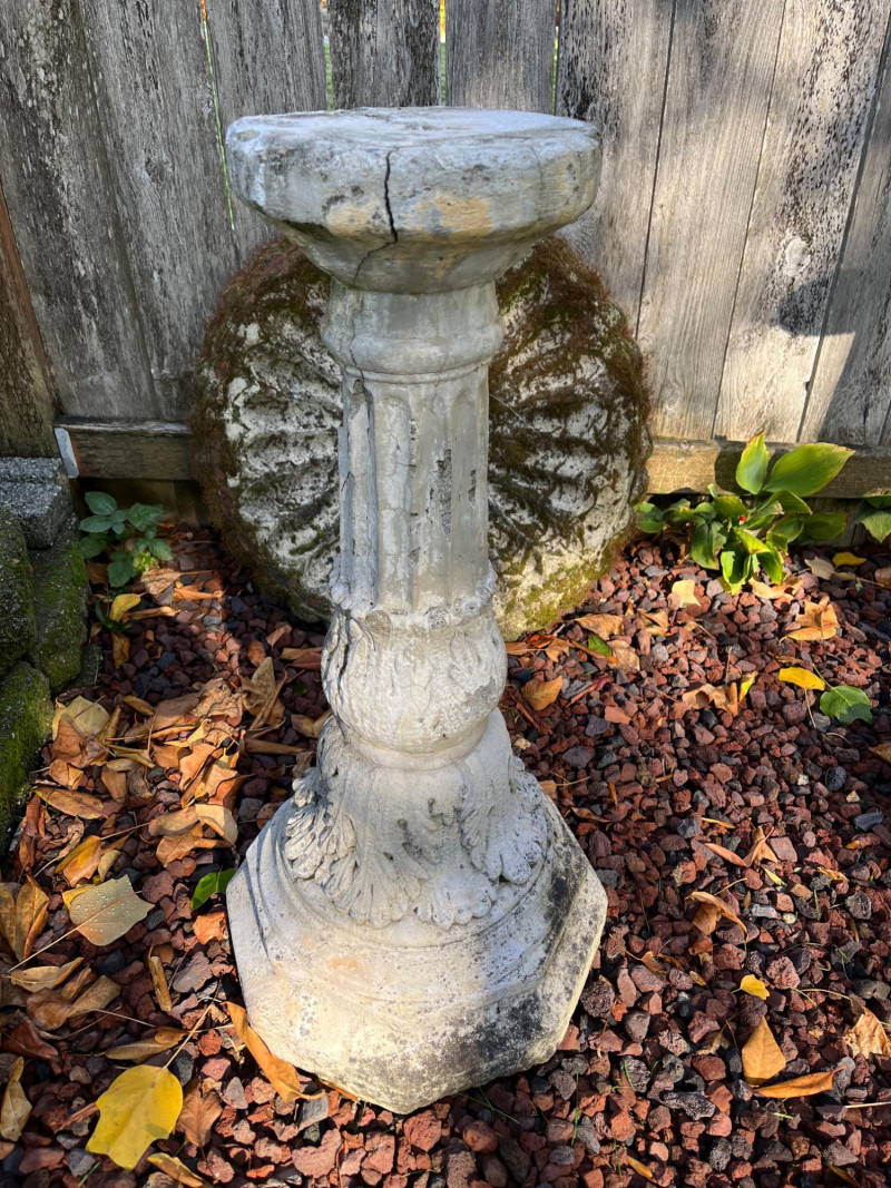 Awesome Vintage Large Concrete Bird Bath 2 Pieces 35" Tall 27" Diameter See Pictures For Condition. When top was placed on bottom insert it didnt fit snug (pictured above)