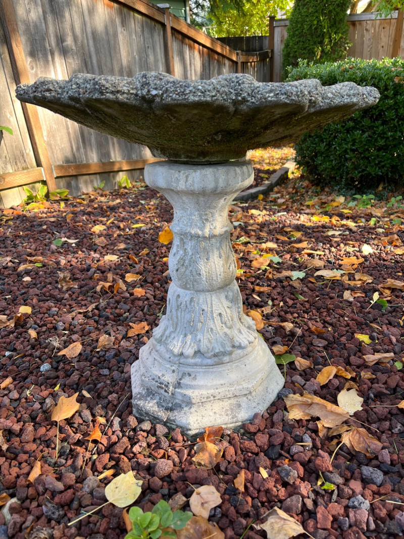 Medium Concrete Bird Bath 26" Tall 24" Diameter No Chips or Cracks Very Cool Piece!