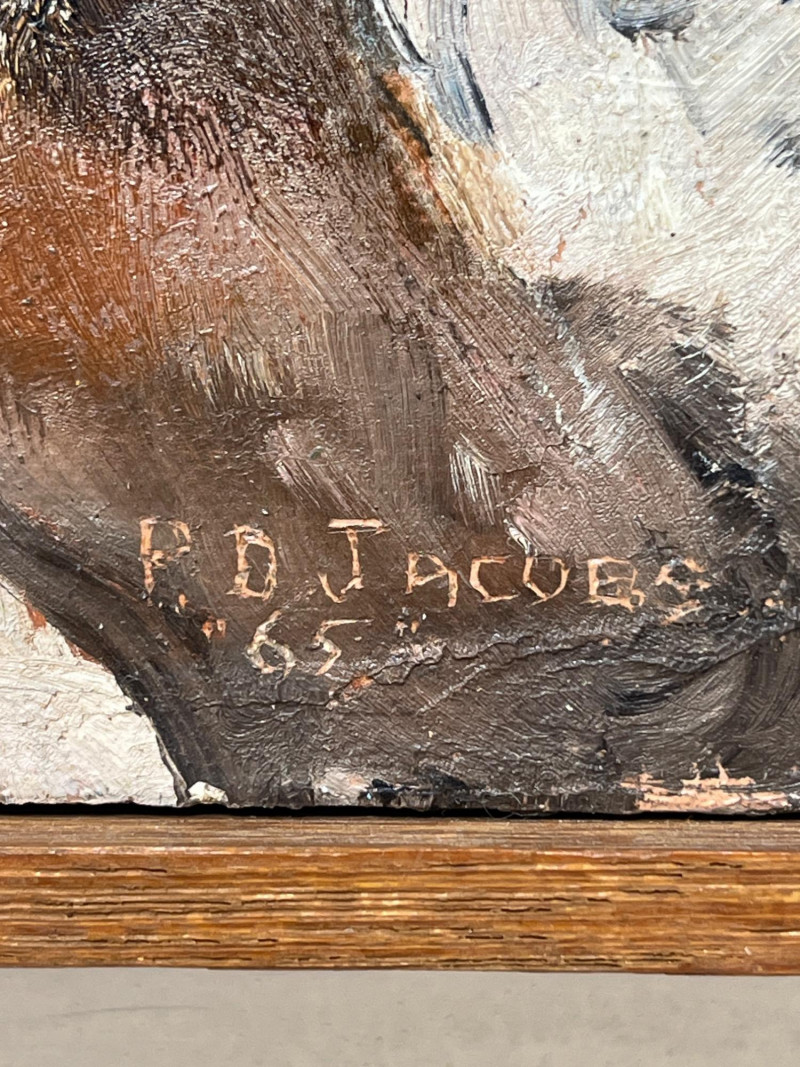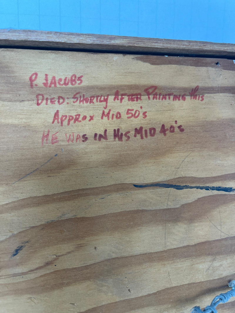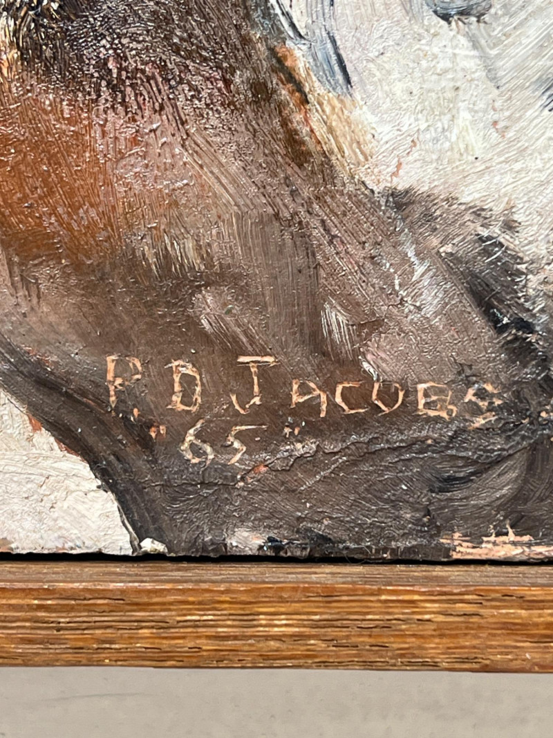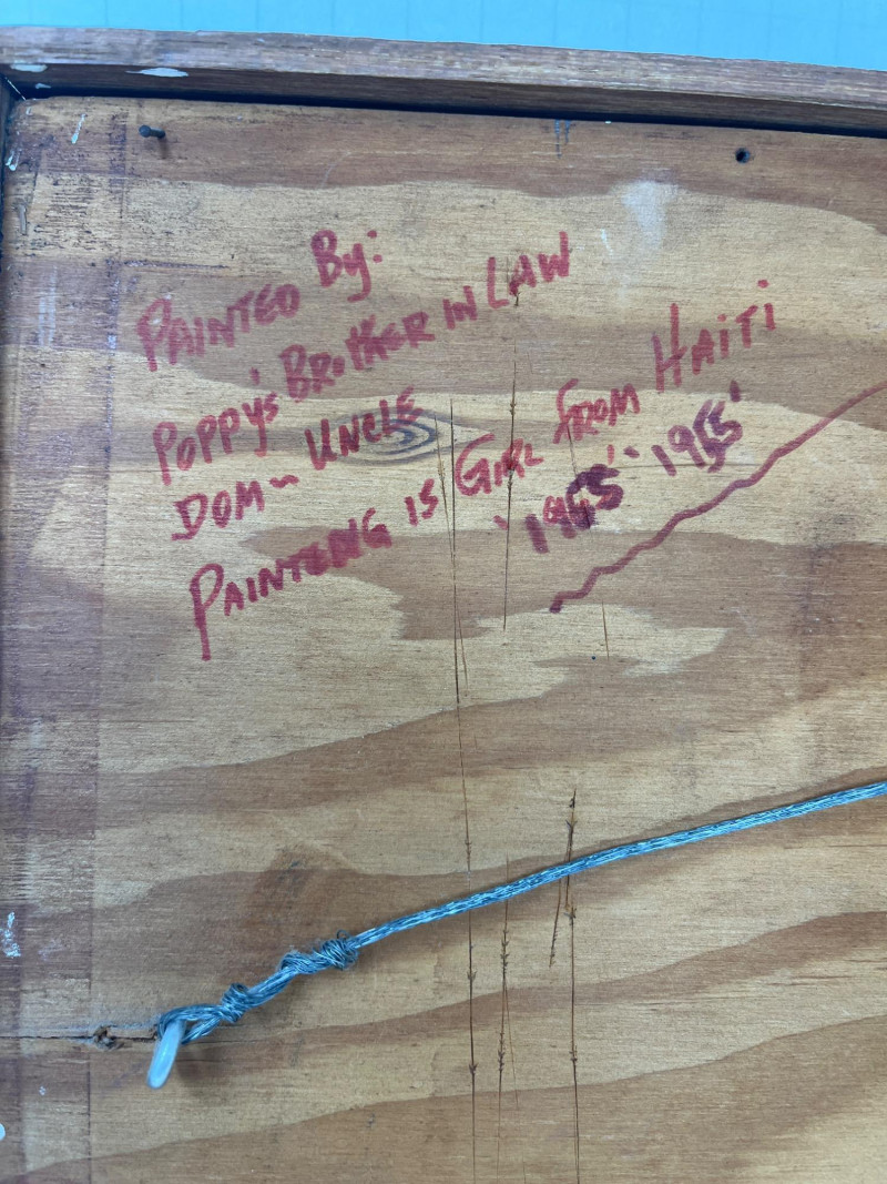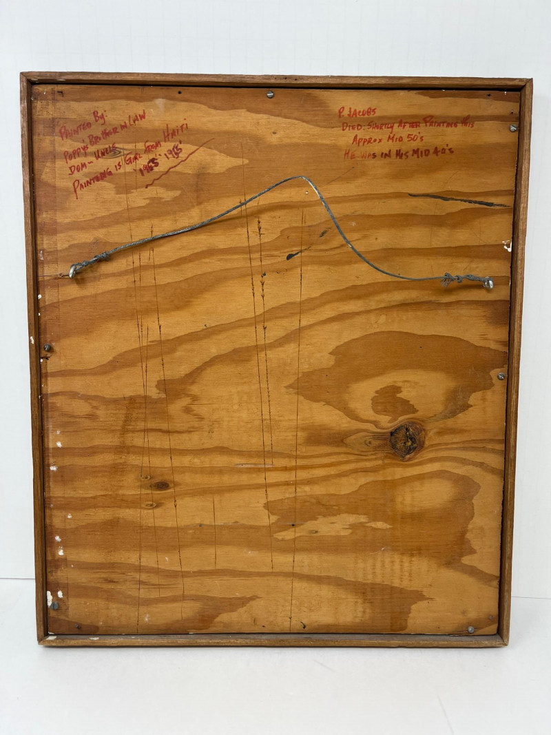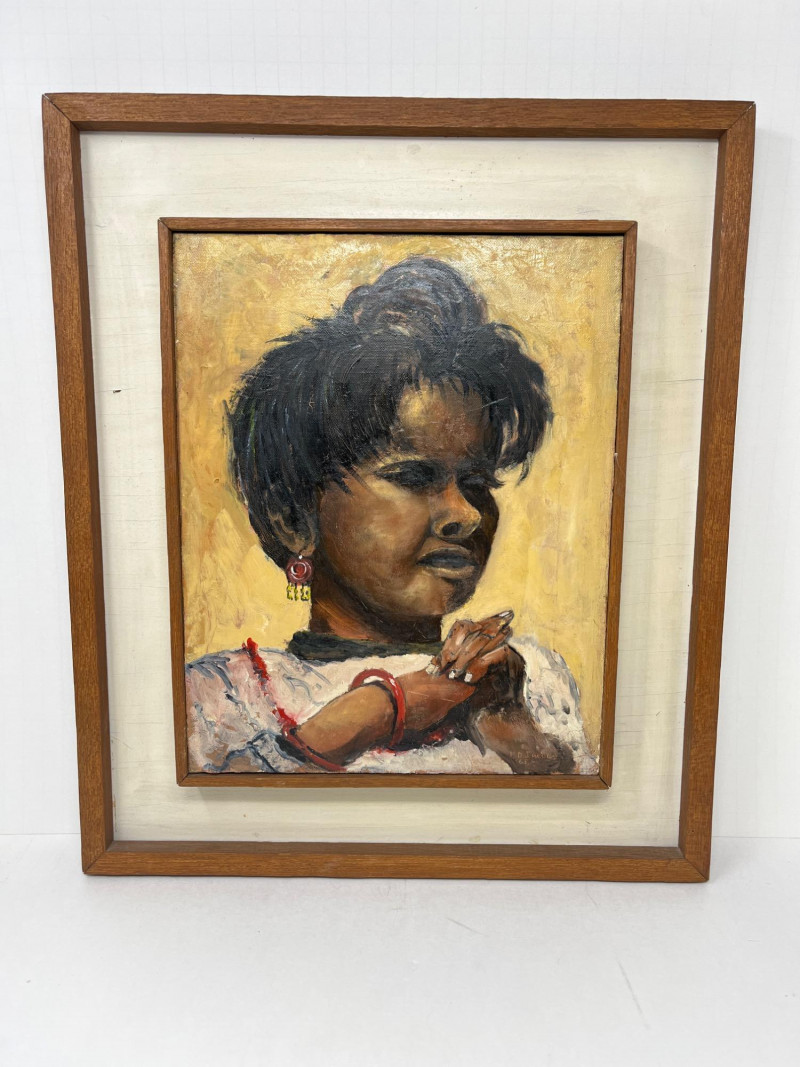 P.D. Jacobs "Haitian Girl" Original Artwork Frame Dimensions 15 x 18 Canvas Dimensions 12.5 x 10 Unique Frame P.D. Jacobs (Artist related to owner of estate) Died Mid 1950's shortly after painting.