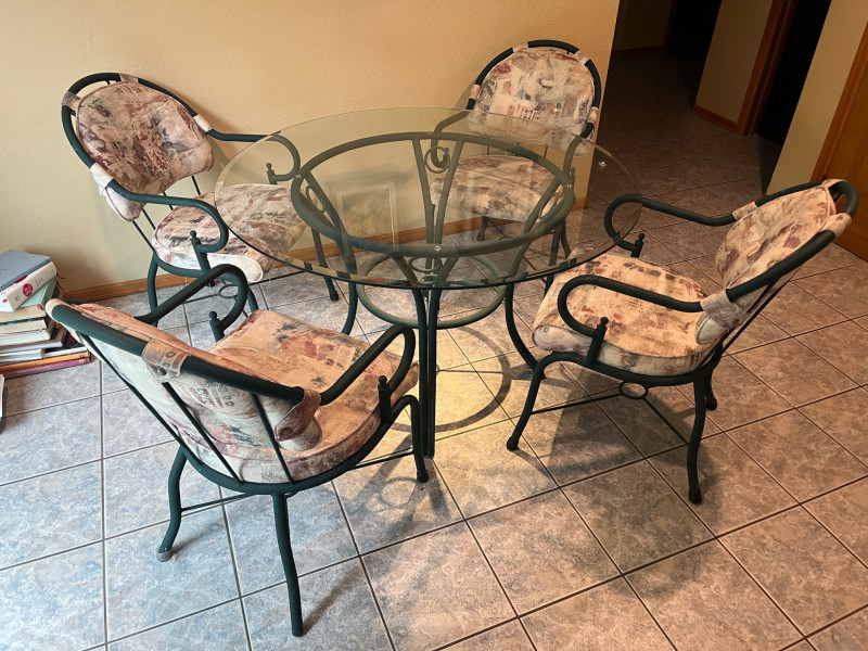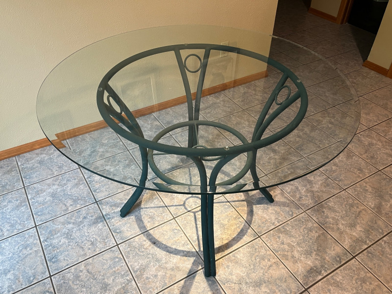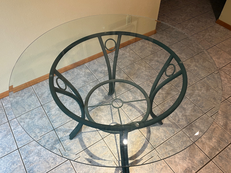Round Glass Dining Table w/ 4 Chairs 48" Table Diameter 29" Table Height Cushioned Chairs/Non Smoking Household