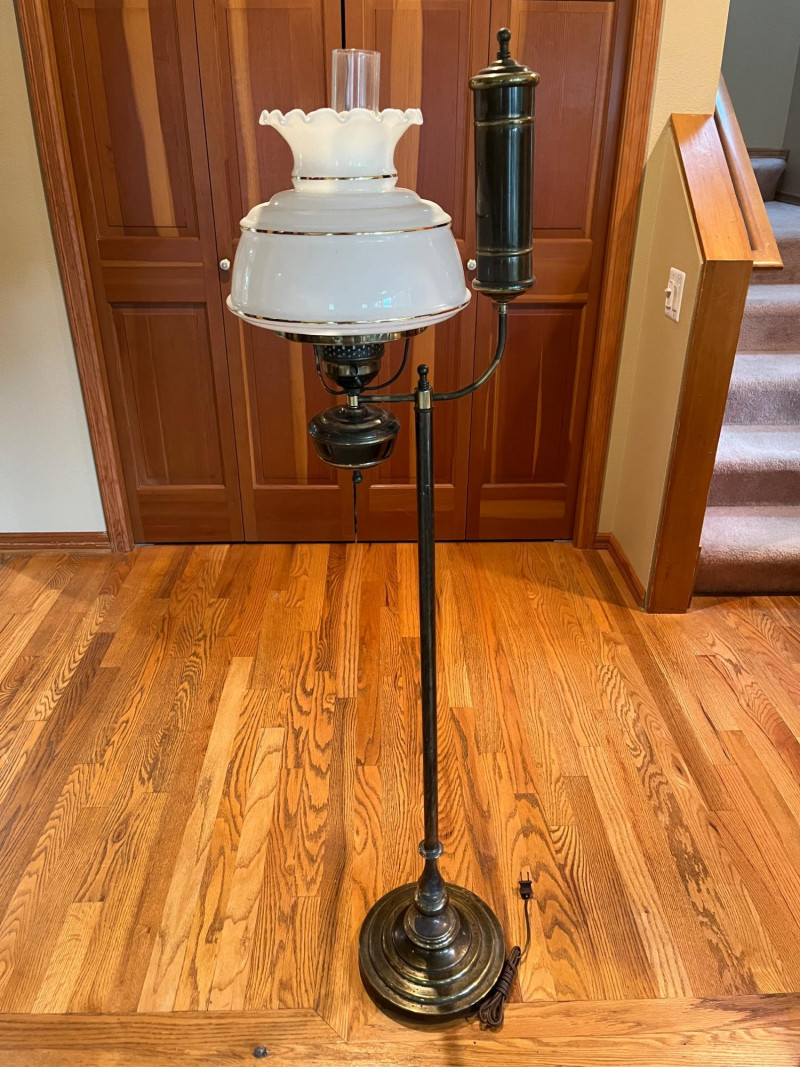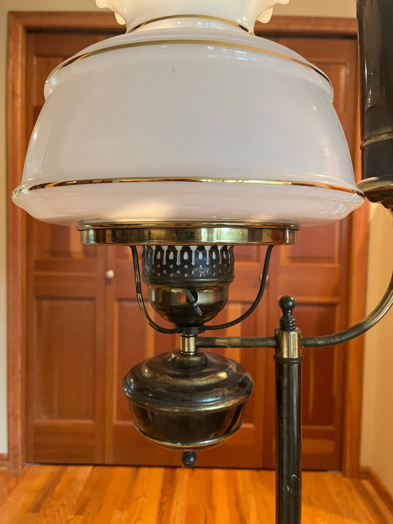 Antique Victorian Oil Lamp Opaque Glass Shade Tested & Working